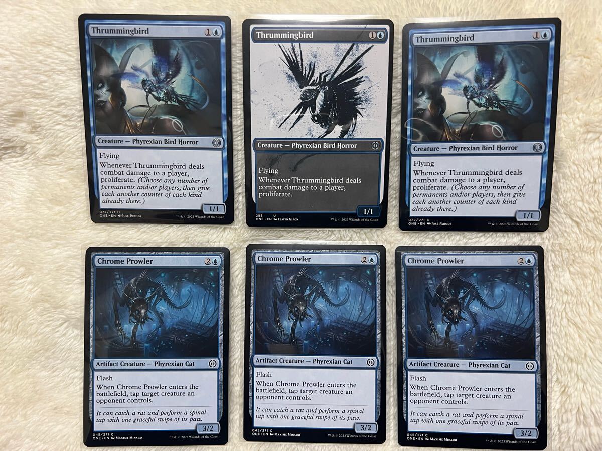 MTG マジックザギャザリング ファイレクシア 完全なる統一 かき鳴らし鳥/Thrummingbird 金属のうろつくもの/Chrome Prowlerで御座います。