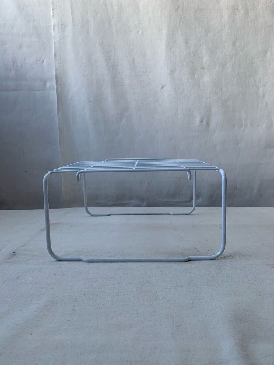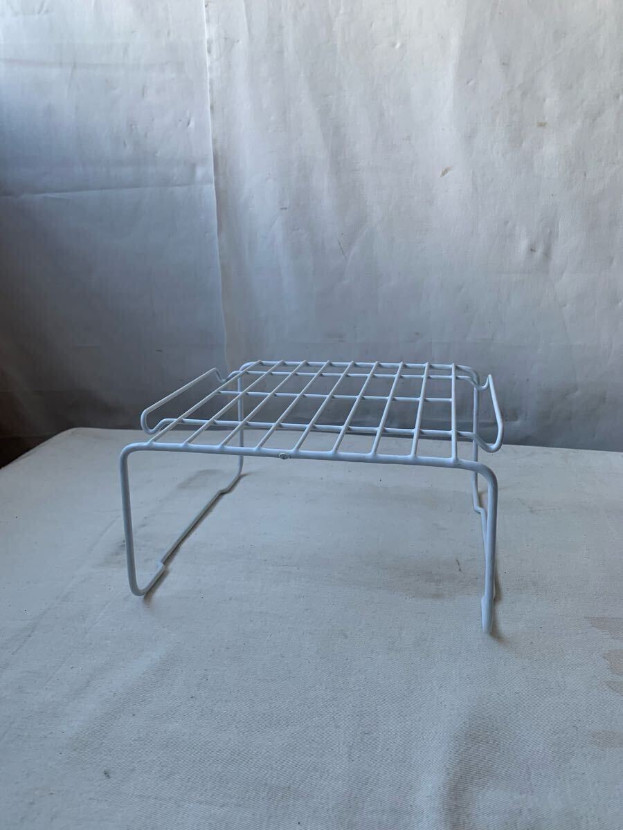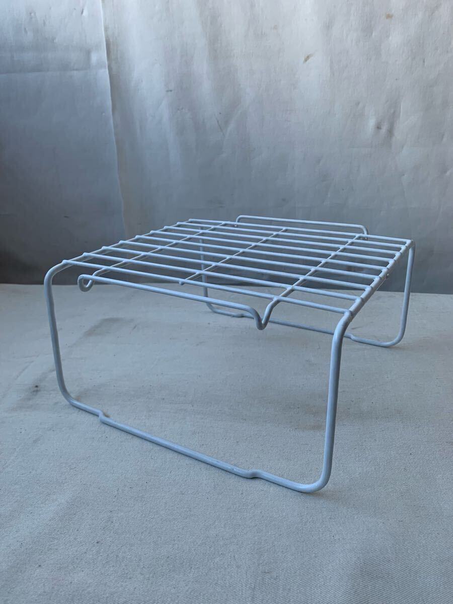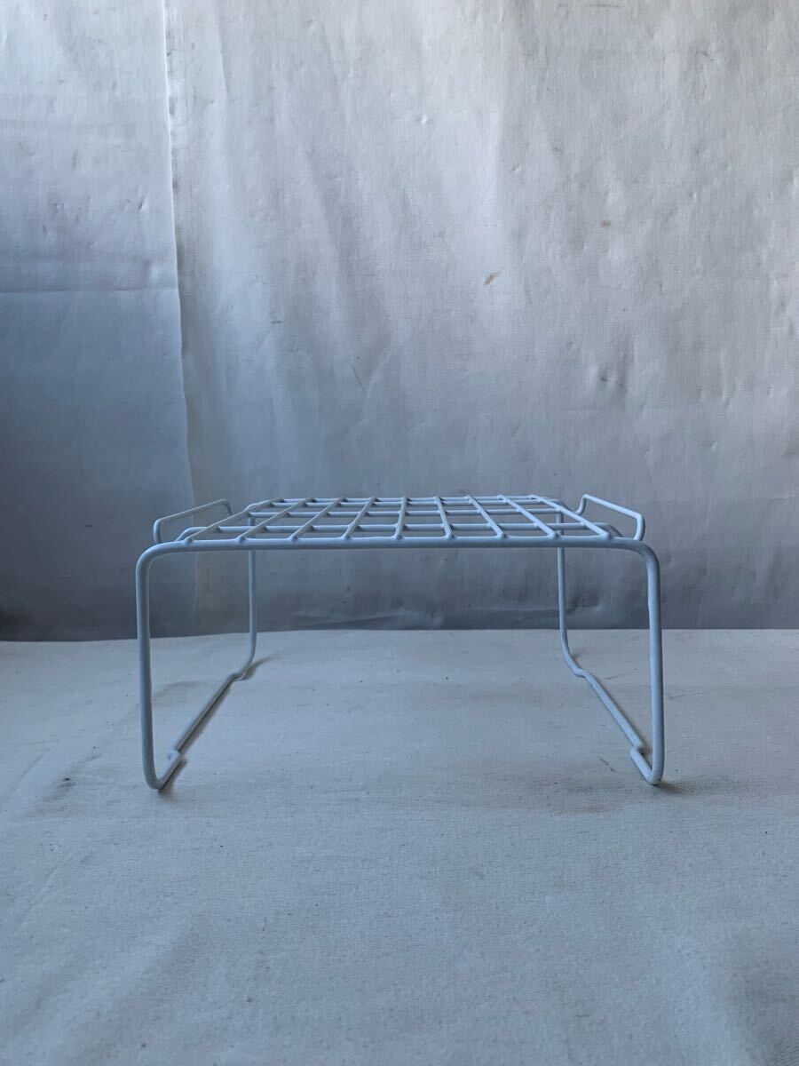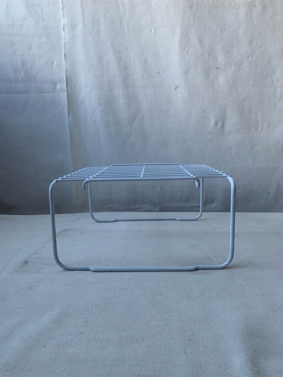 デザインが素敵な白いアイアン製展示ラックです。小物などを飾るお部屋のインテリアや、お店のディスプレイ、イベント出店時の什器などに使って頂くと素敵だと思います。