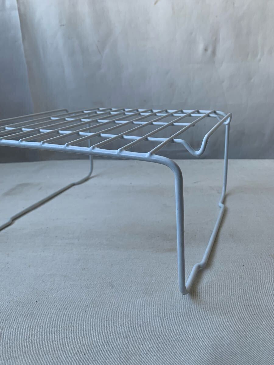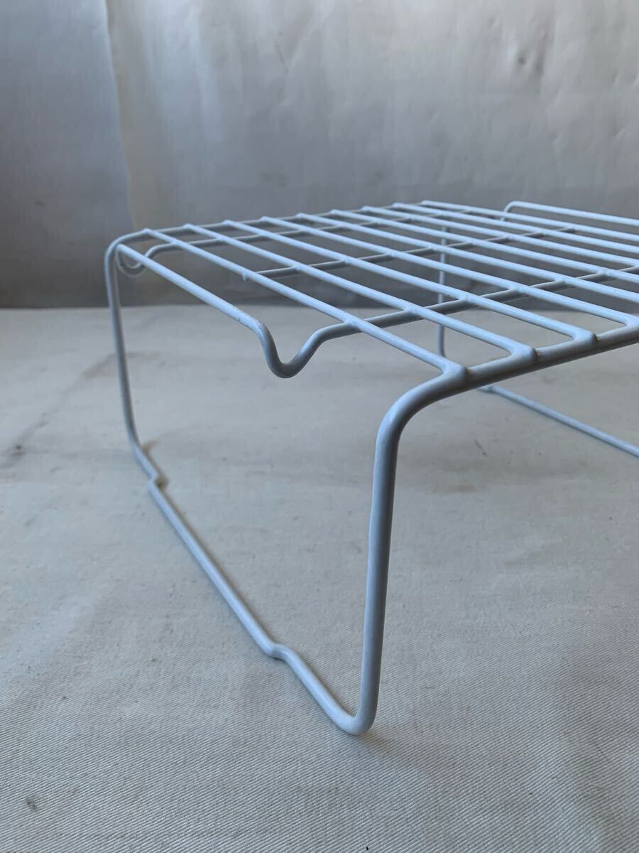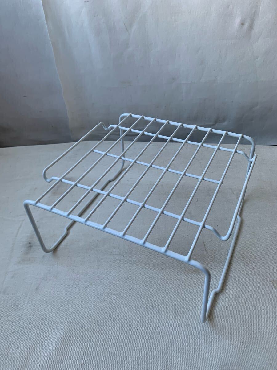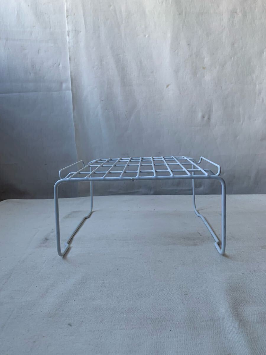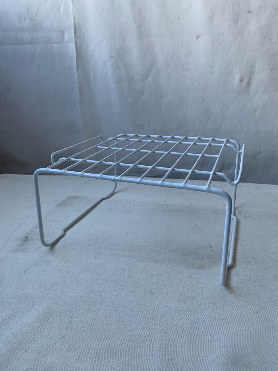 デザインが素敵な白いアイアン製展示ラックです。小物などを飾るお部屋のインテリアや、お店のディスプレイ、イベント出店時の什器などに使って頂くと素敵だと思います。