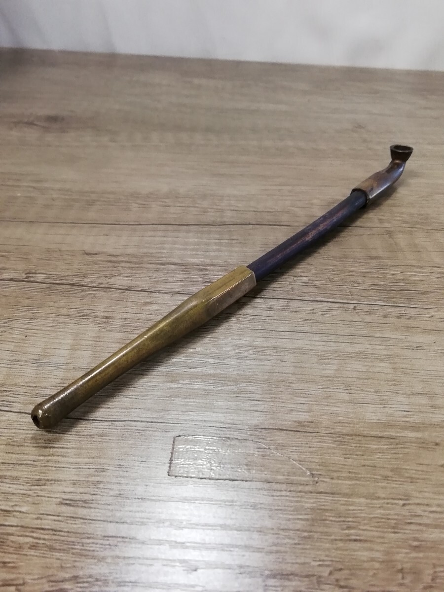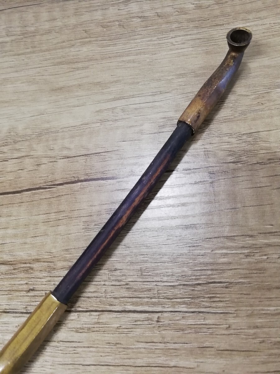 煙管の中古品です。雁首と吸い口が六角で真鍮製です。だいぶ古いもののようです。ラオ部分が細めです。