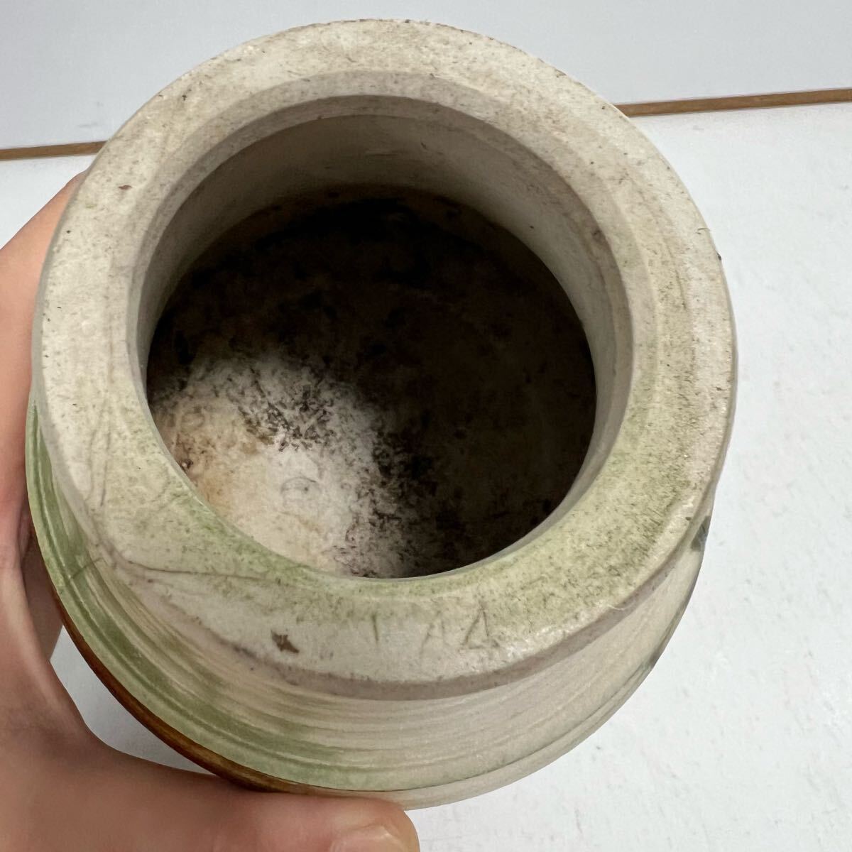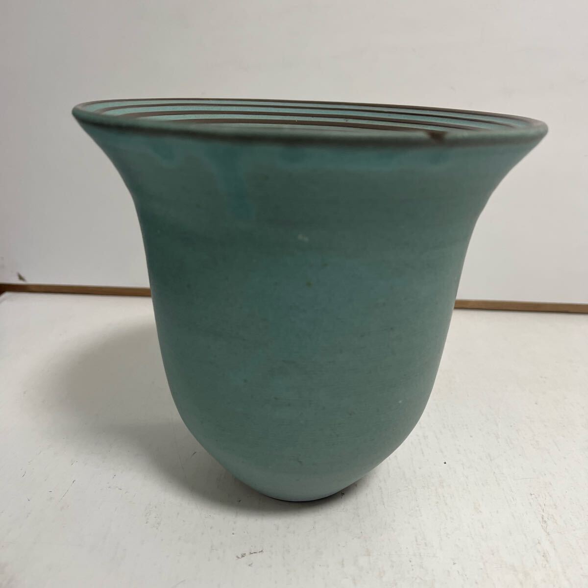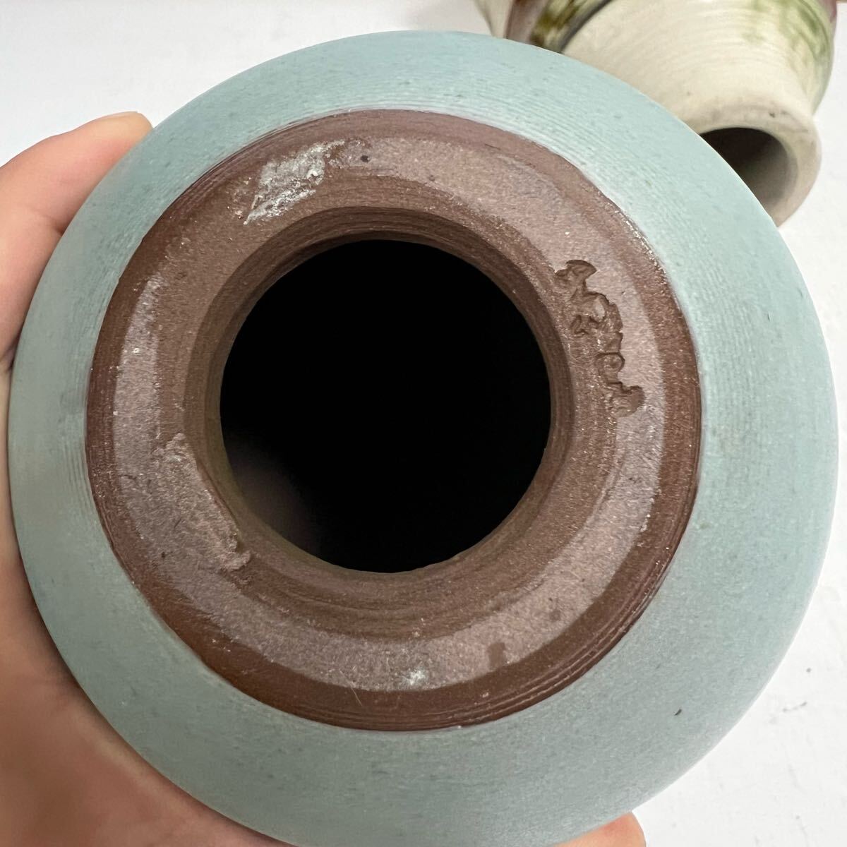 作家物 在銘不明★益子焼 青磁 フラワーベース2個セット 花器 花瓶 陶器 高台 水盤 生け花 上杯 高台杯 ひびありです。