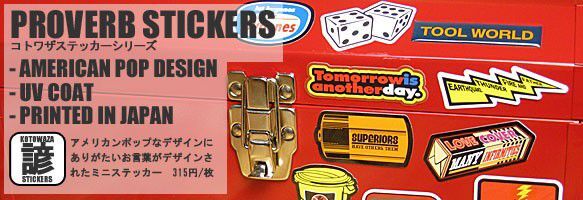 ことわざステッカーシリーズです。アメリカンポップなデザインがCOOL♪雑誌「世田谷ベース」や「デイトナ」でも登場したステッカーシリーズになります。所ジョージさんはアメリカのアンティーク&ジャンク品などからデザインのヒントを得て様々なアイテムをデザインされていますね♪このステッカーもアメリカンなデザインを元に、ことわざ(PROVERB)をユニークに表現しています。材質は色あせ防止&撥水効果のあるUVコートを施した良質なビニールステッカーになっております。そしてMADE IN JAPAN♪車やバイクに!アメリカンインテリアの演出に!自分流でバシバシいっちゃってください♪【意味】「明日は明日の風が吹く」なんとかなるだろう、イージーゴーイングでいこう♪■サイズ(約)L8.9cmXW3.1cm■備考・UVコート・MADE IN JAPAN同梱発送について