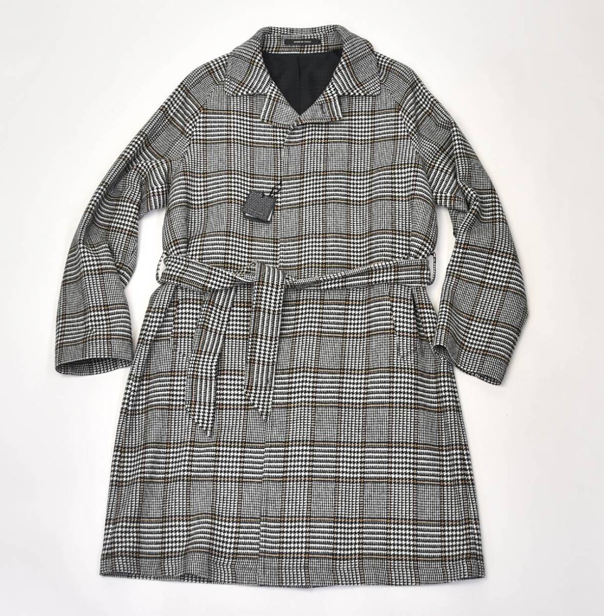 新品タリアトーレTAGLIATOREラグランスリーブステンカラーベルテッドコート46グレンチェック