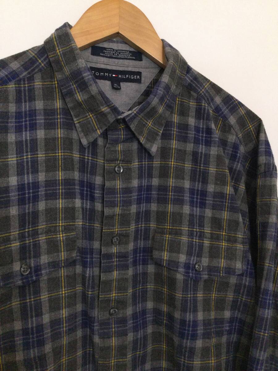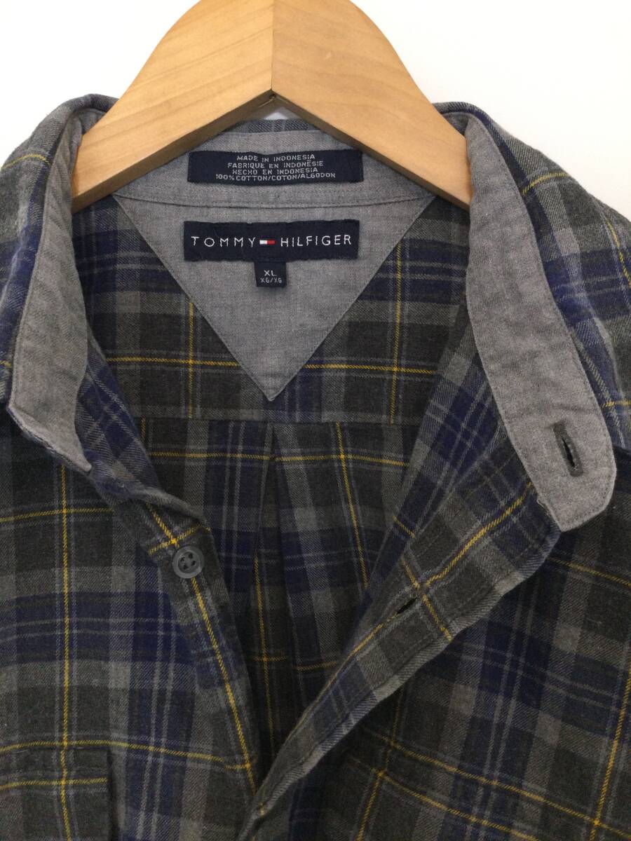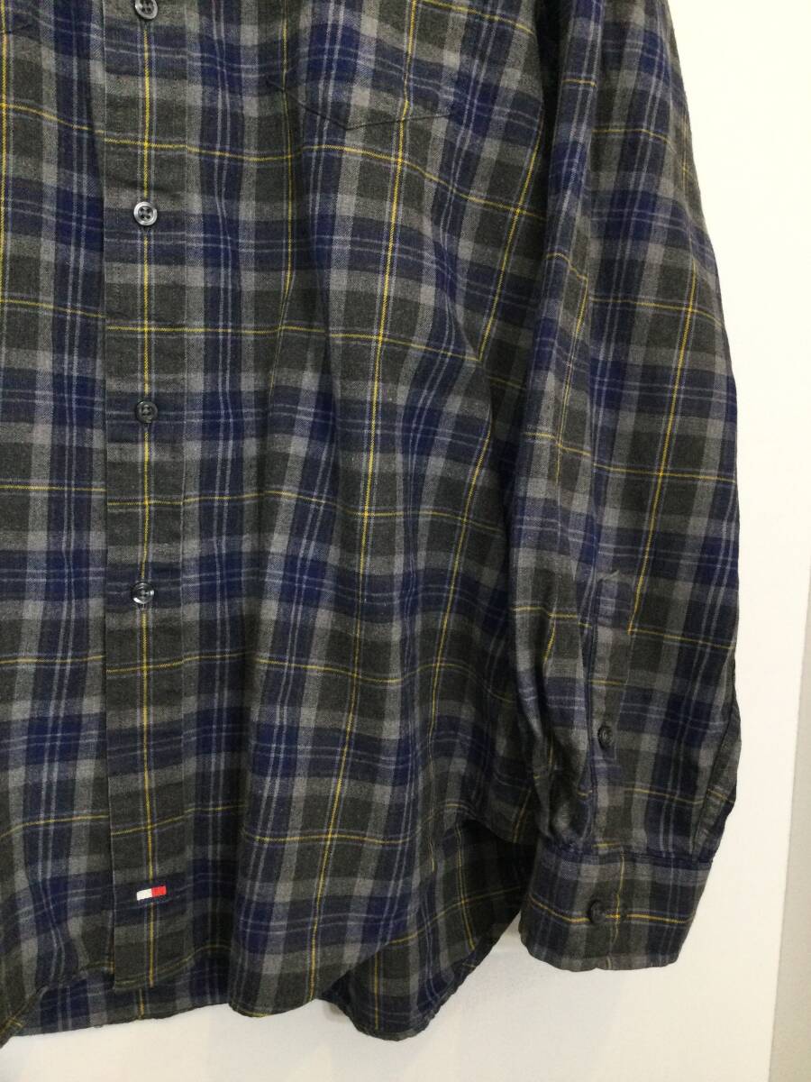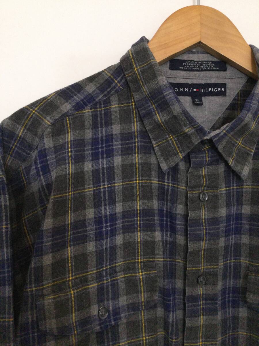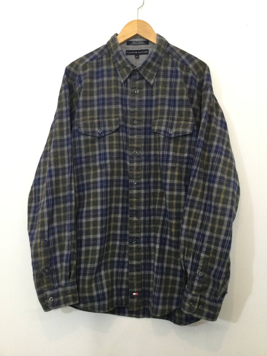 TOMMY HILFIGER トミーヒルフィガー フランネルシャツ ネルシャツ コットン長袖シャツ すそロゴ メンズXL 大きめ 良品綺麗