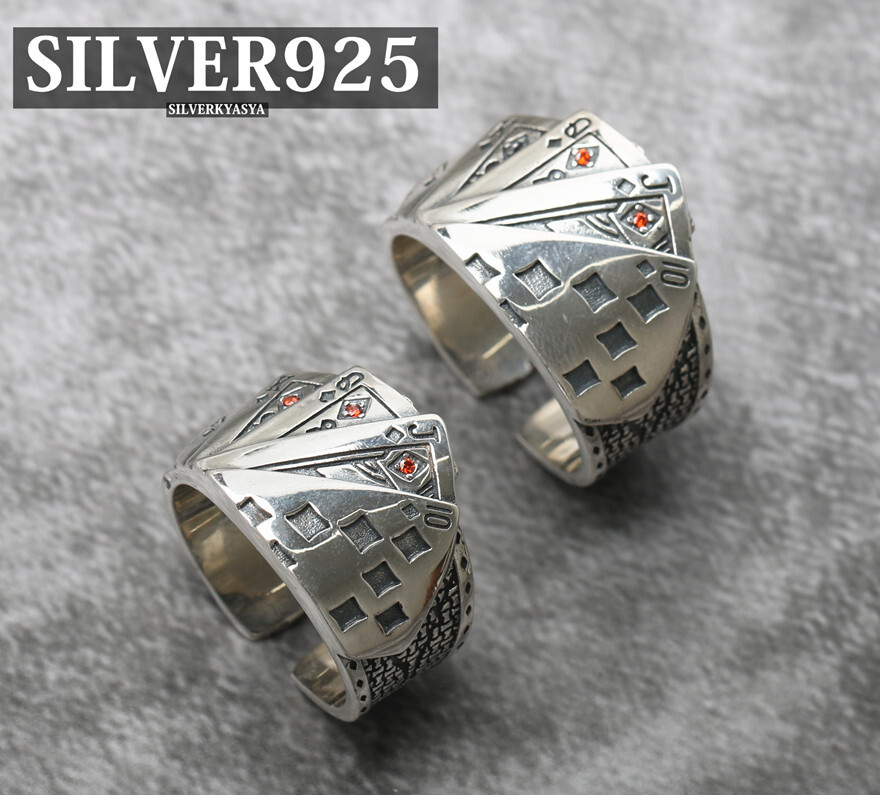 シルバー925素材、手札をのぞき込んでいるようなデザインが印象的なトランプカードのリング2タイプ登場!