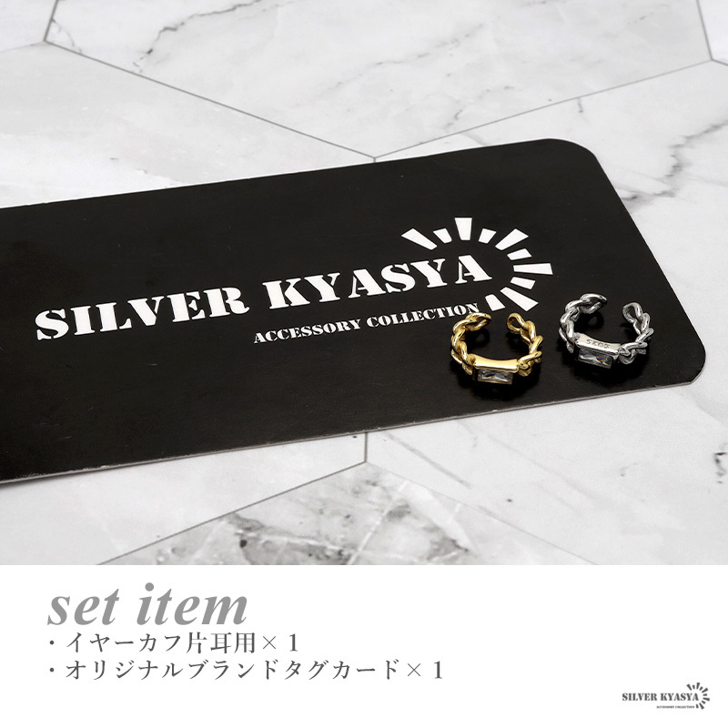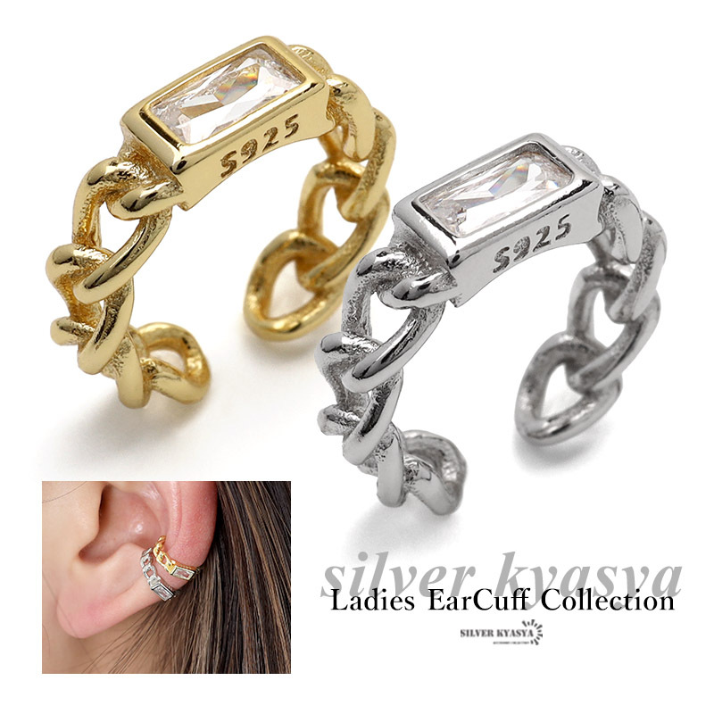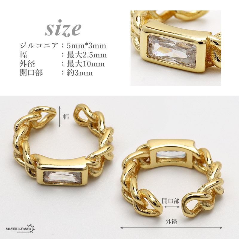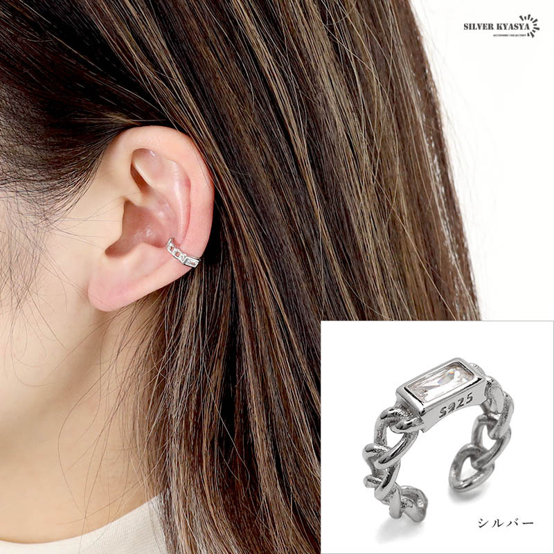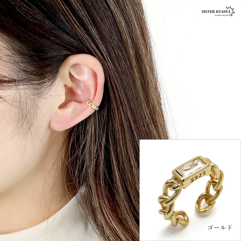 ジルコニアを一粒据えた喜平チェーンイヤーカフ。透き通るようなクリアカラーのストーンがピュアで可愛らしい雰囲気を演出します。
