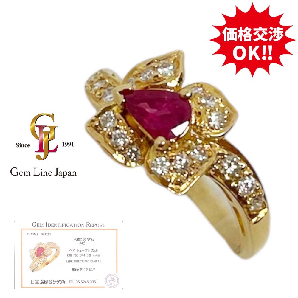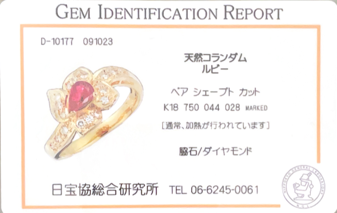 商品名 | K18 天然コランダム ルビー 0.44ct ペアシェープトカット ダイヤモンド 0.28ct リング | ||