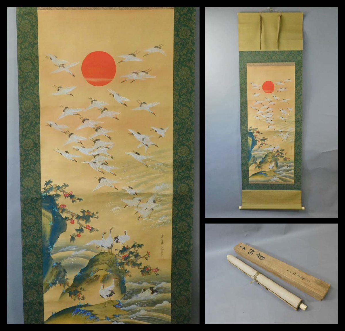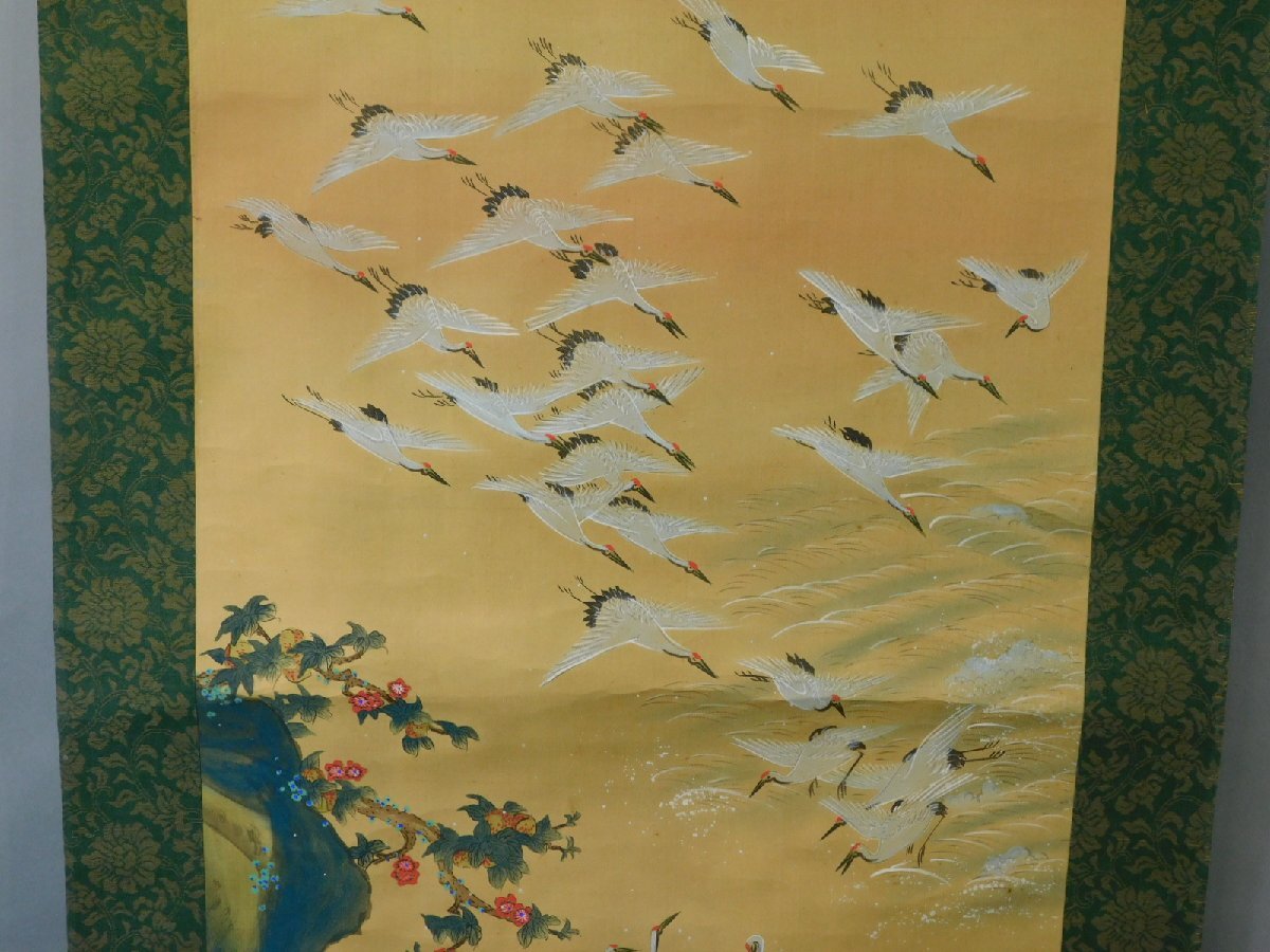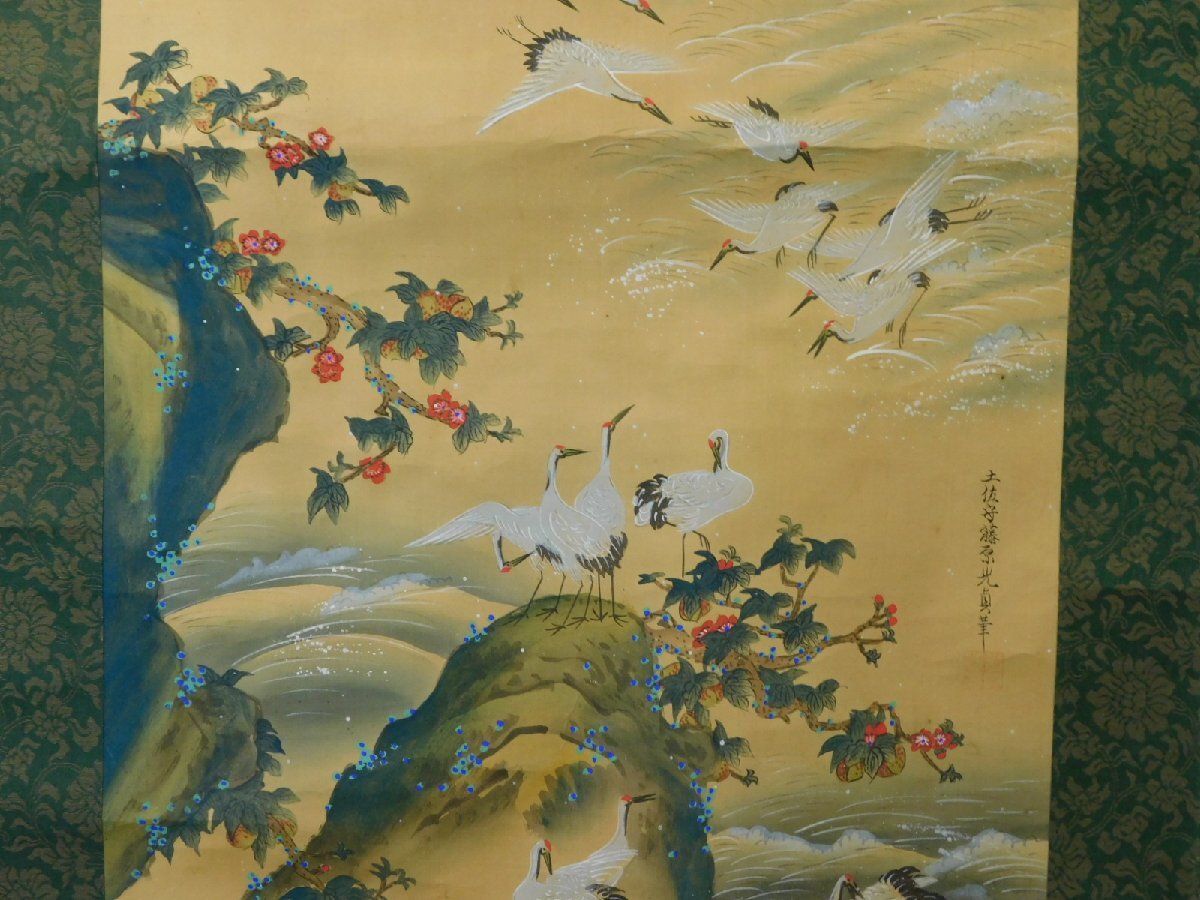 土佐光貞 千羽鶴 日本画 掛軸 軸装 w250044