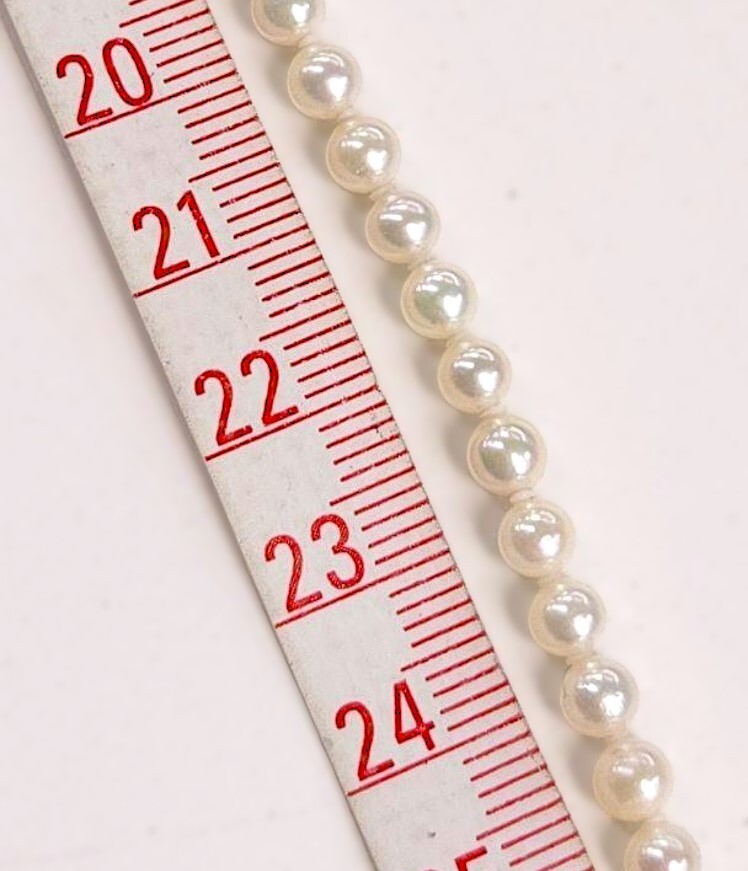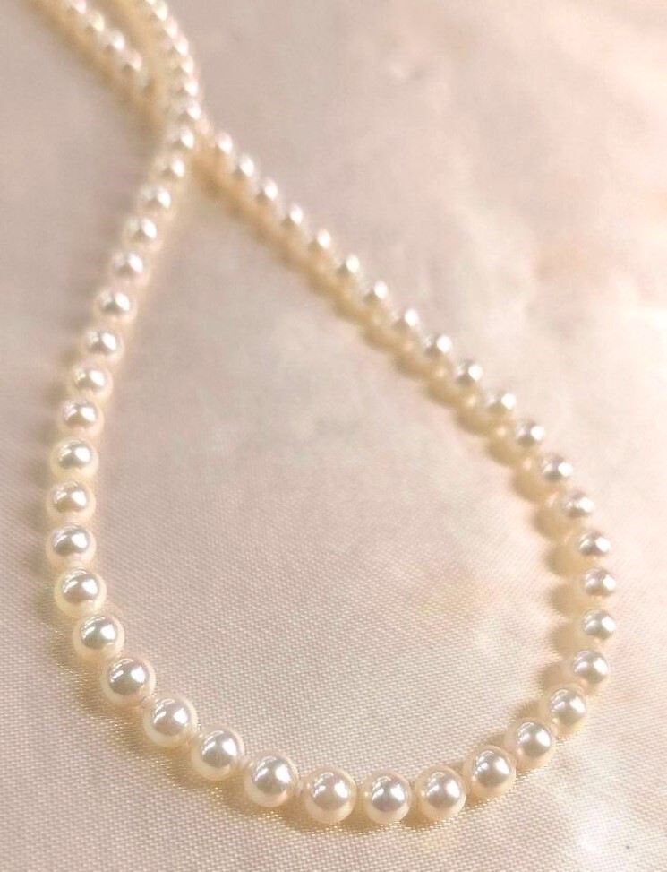ベビーパールの上品なネックレスです。 どの真珠も約4.5mmに大体揃っており、一粒一粒のカラー、光沢、艶が統一されております。 シリコンクッションは粒と粒のこすれを防ぐ真珠に優しい手法です。 普段使やお出掛け、入園入学式などセレモニーにも最適です。 =============== ●素材:真珠 ●金具素材:シルバー ●カラー:ナチュラル~ややピンク系 ●長さ:約43cm ●直径:約4.5mm ★鑑定書/鑑別書等はございません。 =============== ※目立つ傷み・汚れ等なく、全体的に綺麗な状態です。 画像をご確認の上、ご検討下さいませ。 | |||