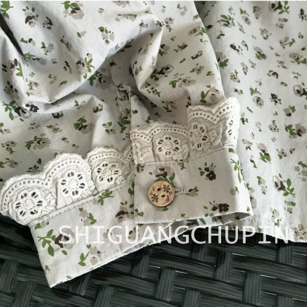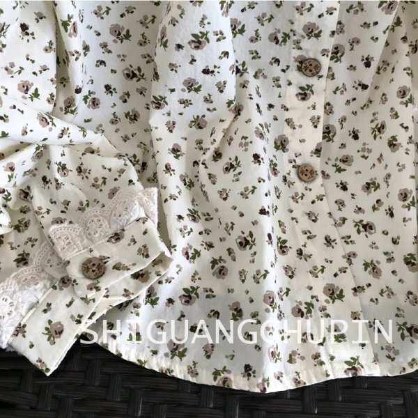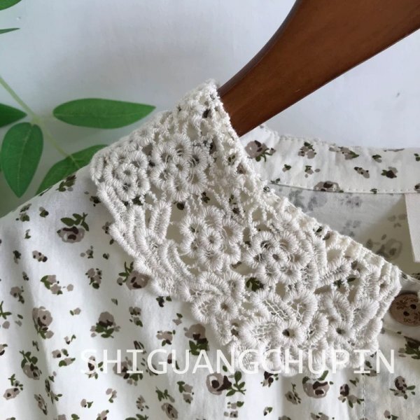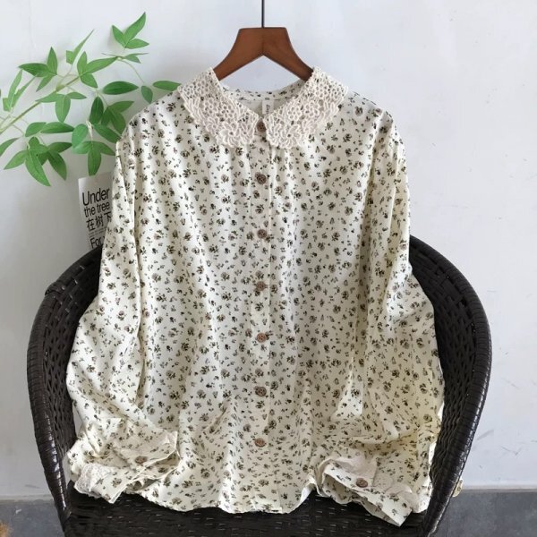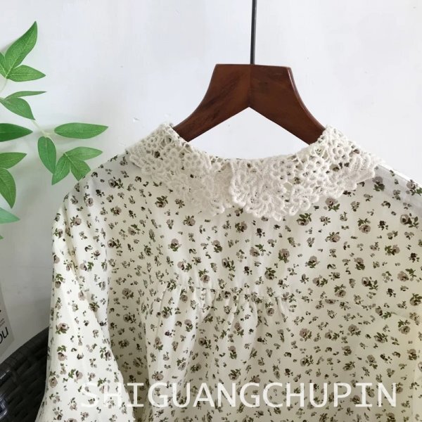 yq 2502 チュニック ワイシャツ 花柄 レース襟 ゆったり オシャレ フリーサイズ ナチュラル クリーム色系
