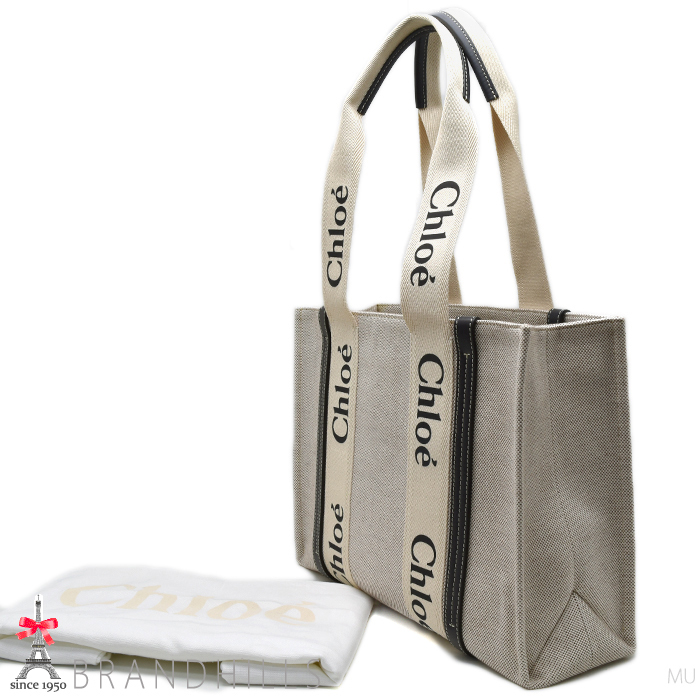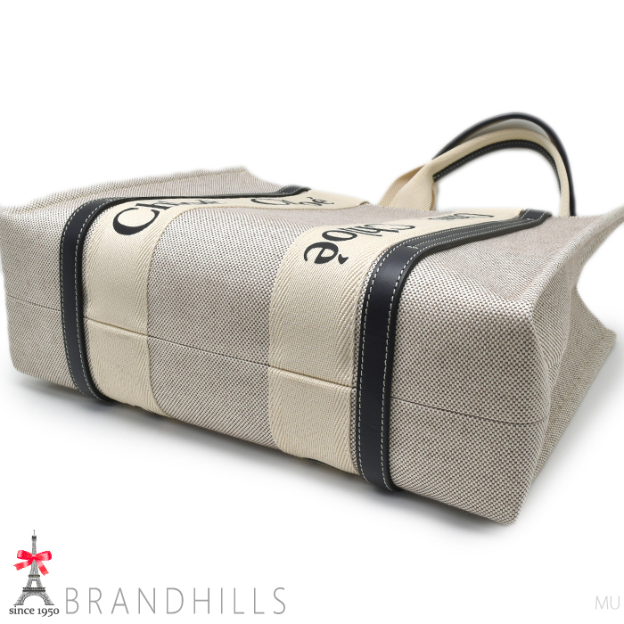 クロエ トートバッグ ウッディ ミディアム White & Blue キャンバス レザー CHC21US383E6691J Chloe 美品