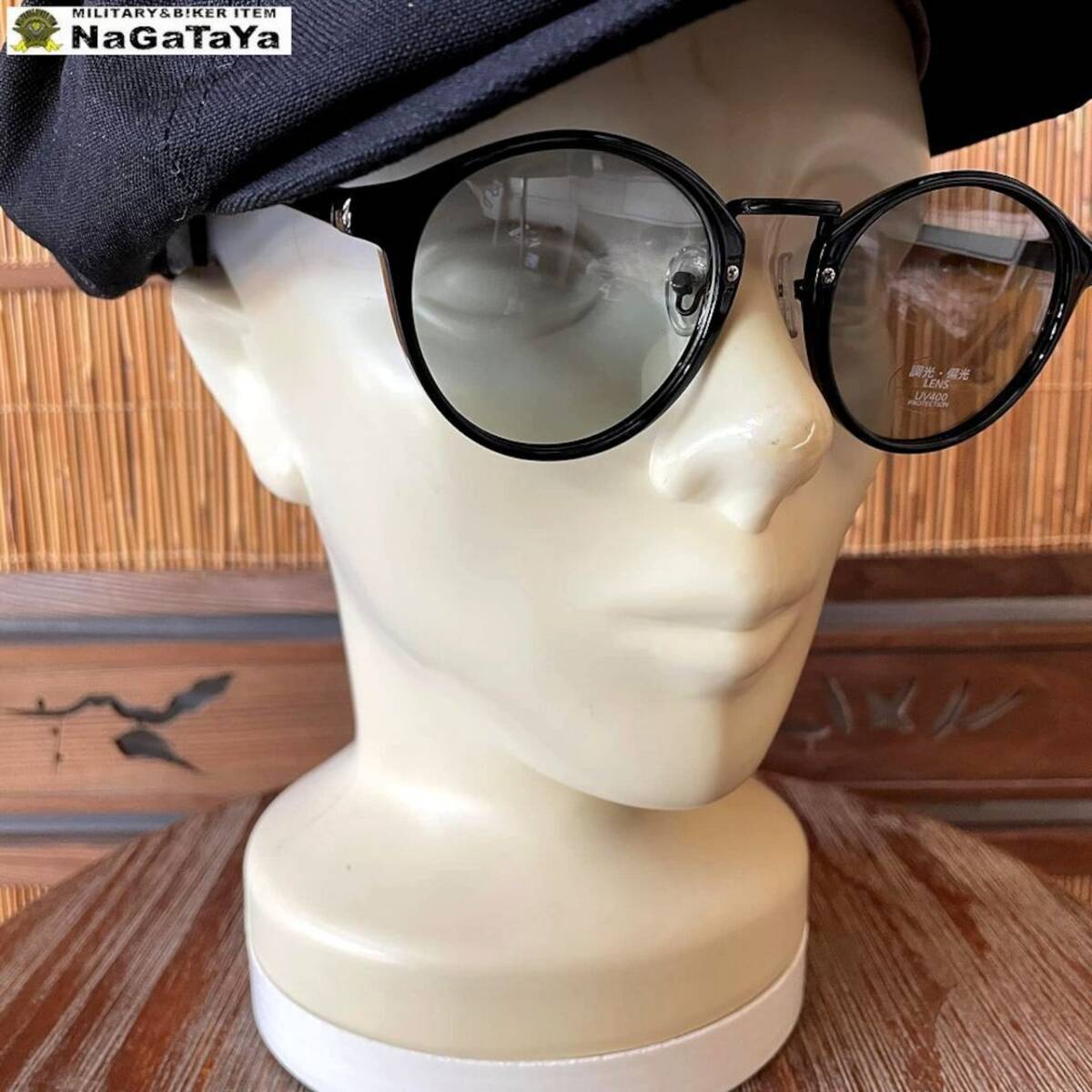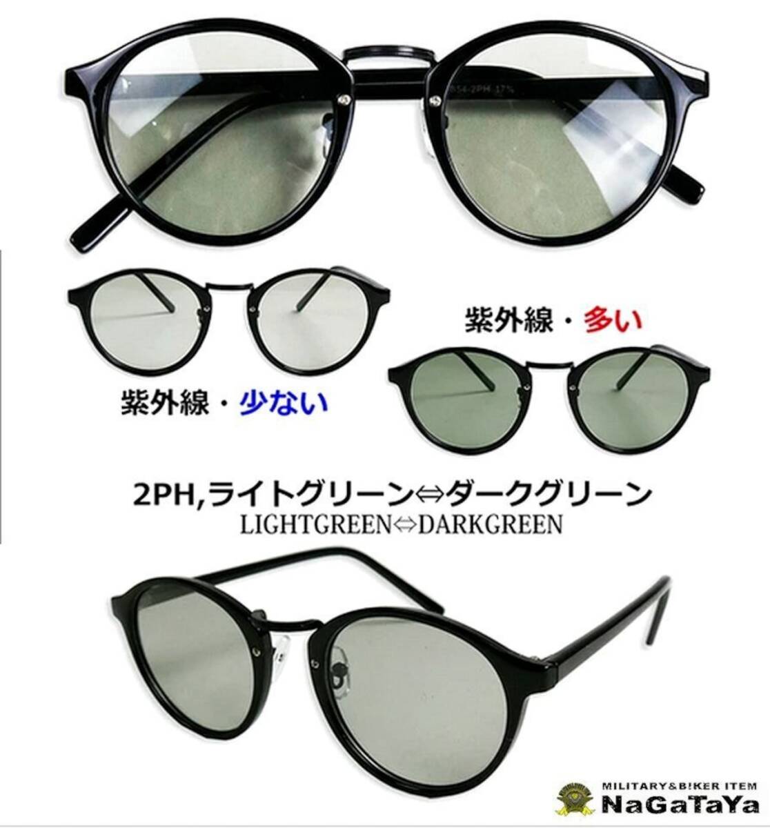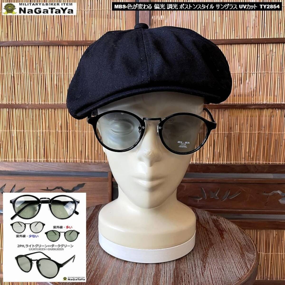MBN レンズの色が変わる 偏光 調光 ボストンスタイル サングラス 男女兼用 UVカット 黒×ライトグリーン TY2854 巾着ソフトメガネケース付