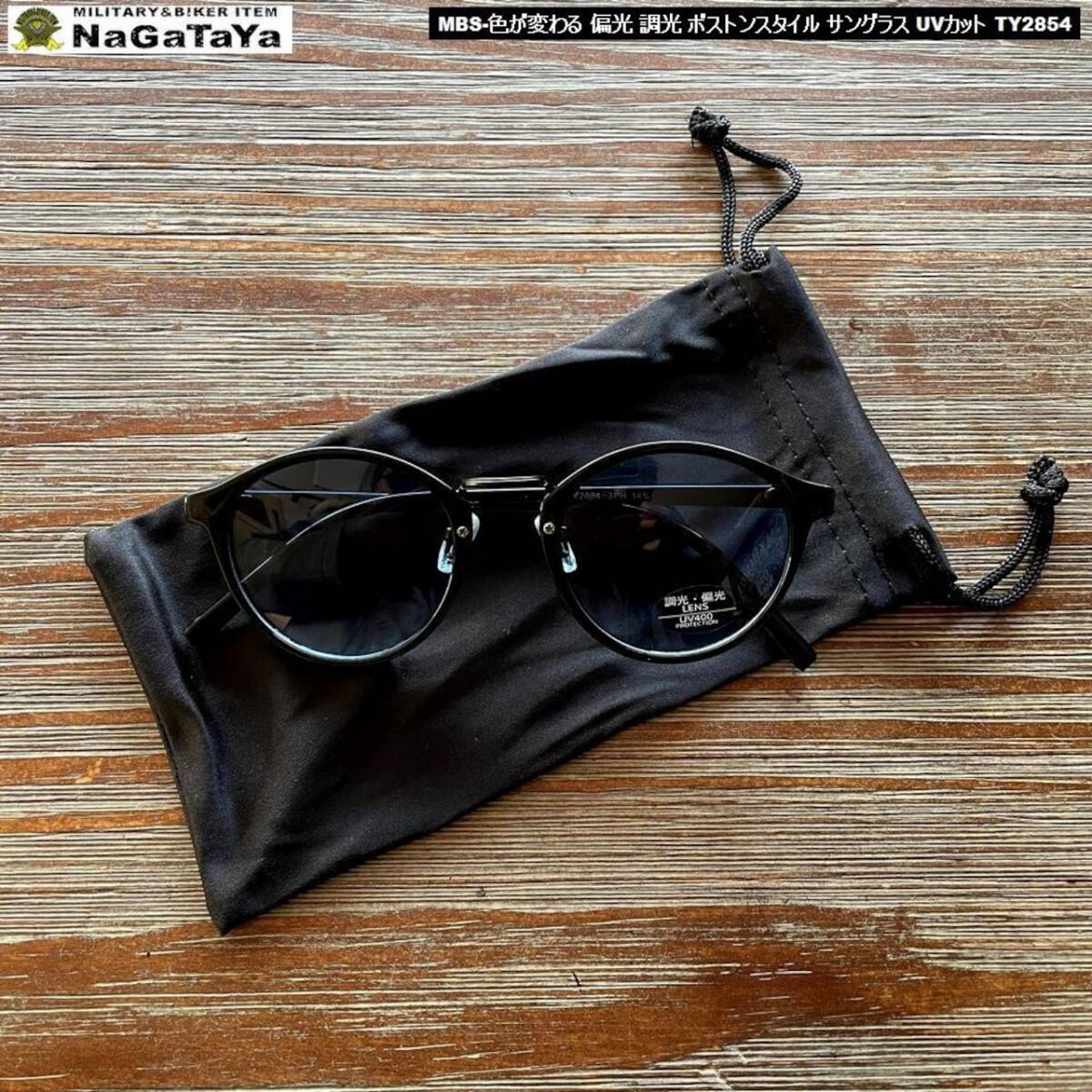 ★ MBN 色が変わる 偏光 調光 ボストンスタイル サングラス メンズ レディース UVカット ライトカラーレンズ TY2854 巾着ソフトメガネケース付 ★