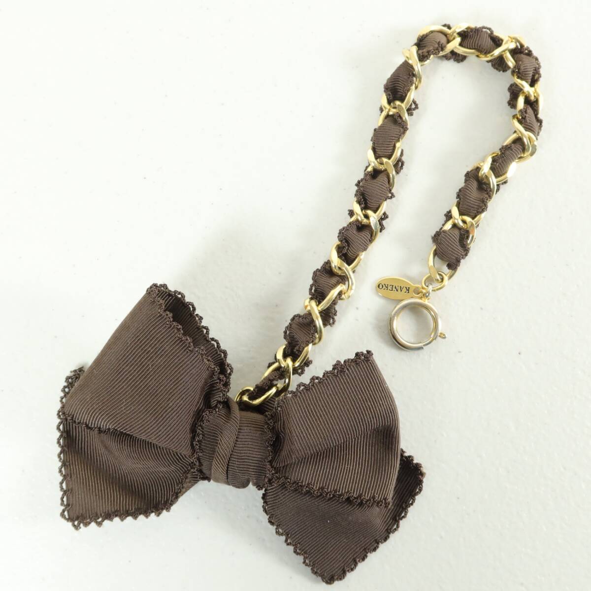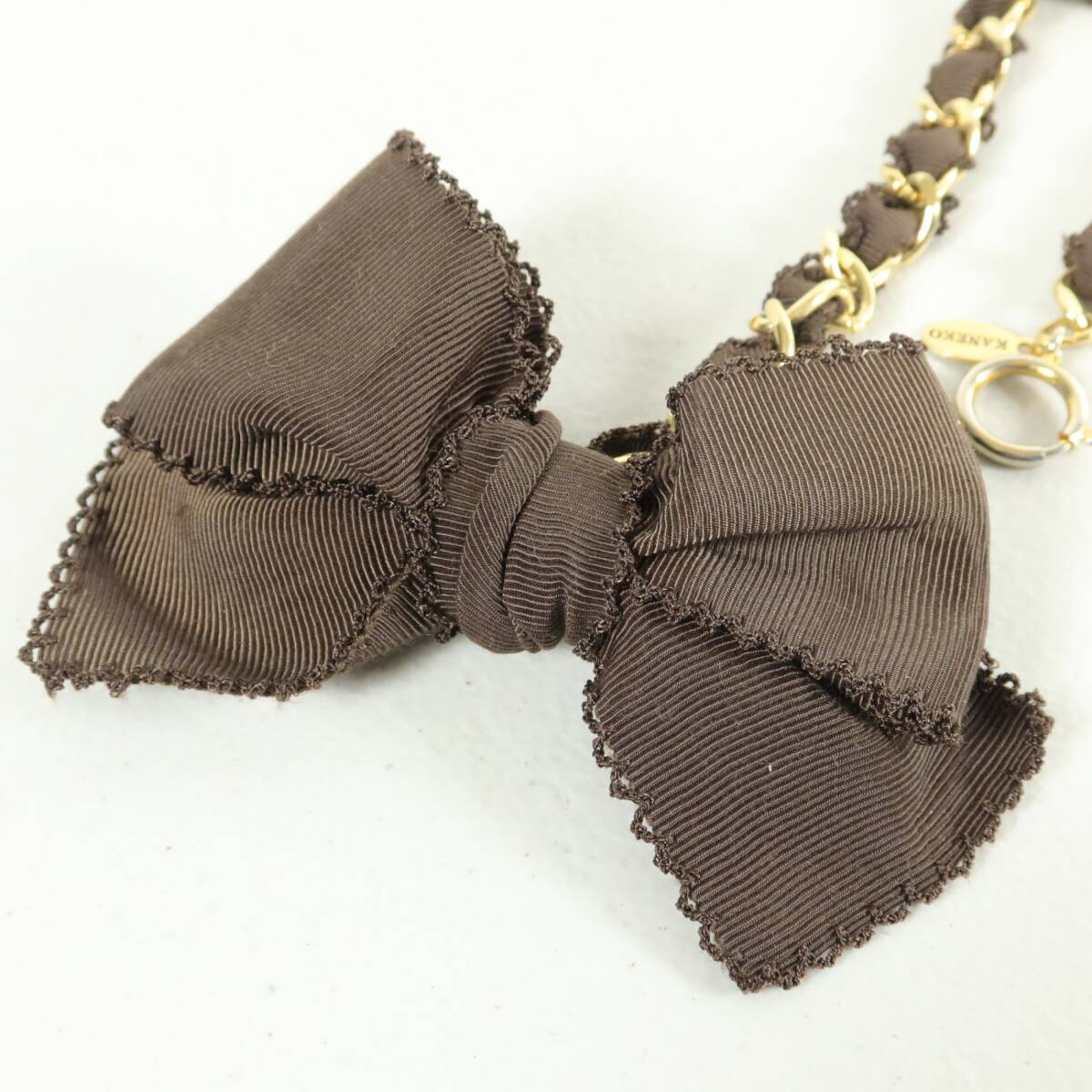 | 商品説明 | 【実寸約】モチーフ:9×12 チェーン:32(cm) 【サイズ表記】タグなしのため不明 【素材】タグなしのため不明 【状態】普通の使用感のあるお品物 【デザイン】ブラウン×ゴールド系 ピコレースが縁取りされたサテンリボンが素敵なチェーンチャームです。 |