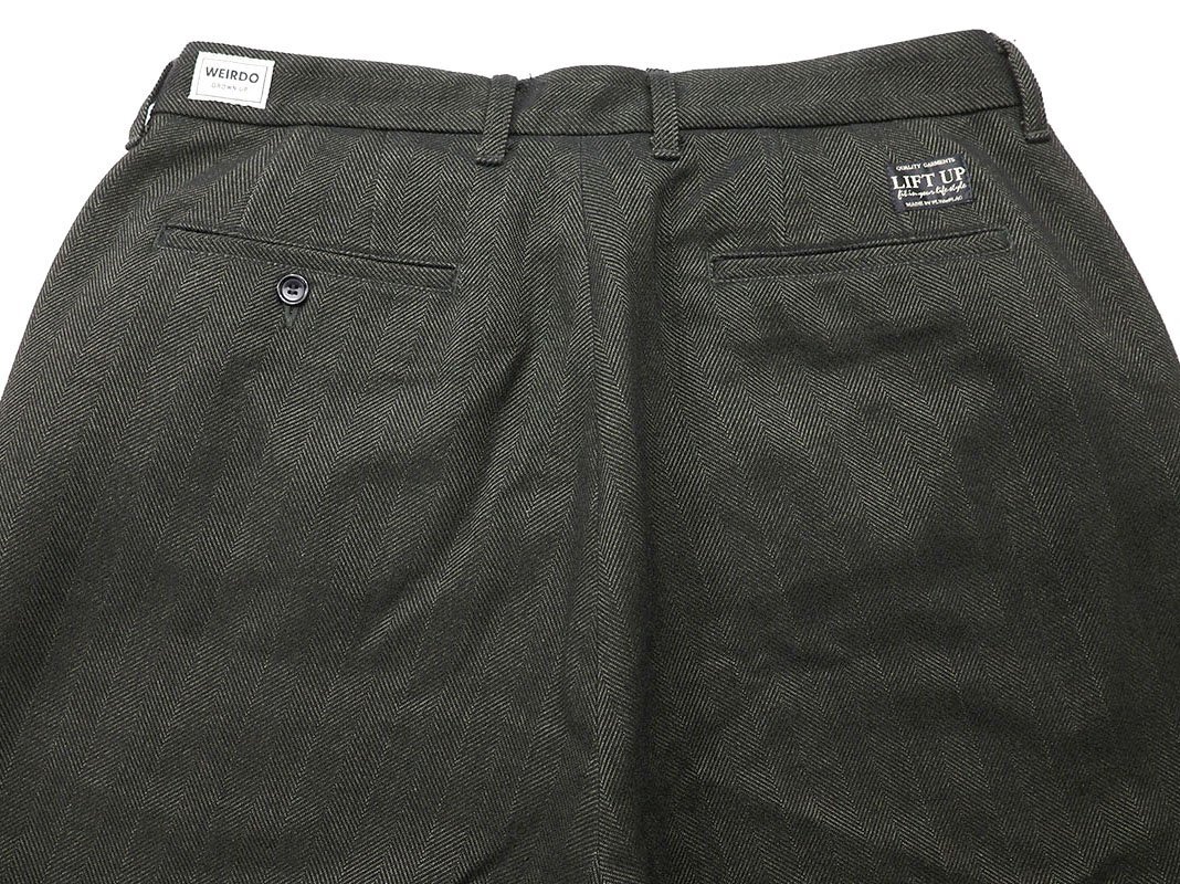◆商品詳細 | こちらはウィアード × リフトアップのW&L UP - SLACKS / ヘリンボーン スラックスです。 ポリエステル100%のヘリンボーンファブリックを使用したコラボレーションモデル。腰裏にはヴィンテージラバープリントが施されています。 短めのレングスと、緩やかにかかったテーパードシルエットが特徴的です。 カラー:KHAKI 定価:16800円+TAX 当店の取扱い商品はすべて厳重なチェックを重ねてから出品しておりますのでコピー商品や偽物は一切ありません。 万が一偽物だった場合は商品代や返送費などかかった費用全額返金いたします。安心してお買い求め下さい。 | |