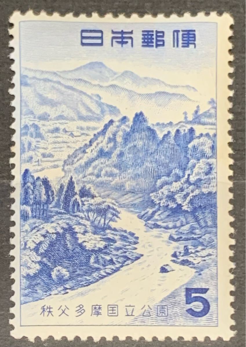 ●【未使用】単片切手 第1次 国立公園シリーズ 戦後 秩父多摩国立公園 奥多摩渓流 5円 昭和30年 匿名配送