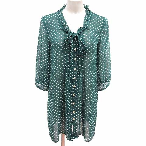 アパートバイローリーズ apart by lowrys シャツワンピース チュニック ボウタイ シフォン ドット 長袖 M 緑 グリーン /YK レディース