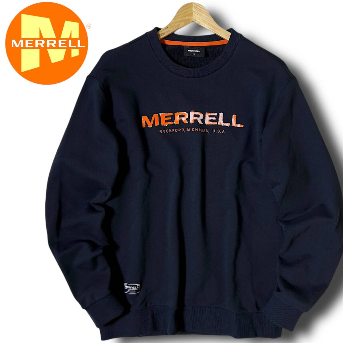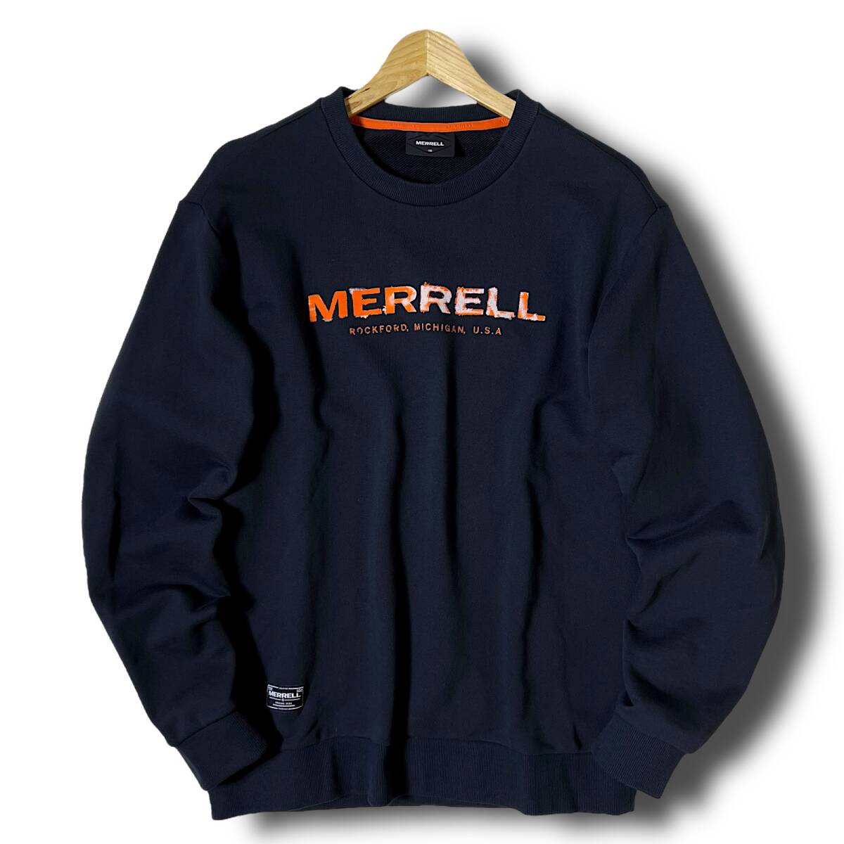 タイトル 新品 MERRELL メレル 日本未発売 肉厚コットン 裏毛 裾ロゴタグ ビッグロゴ クルーネック スウェット トレーナー プルオーバー M メンズ アウトドア スポーツ レジャー キャンプ 旅行 カジュアル 普段使い タウンユース 秋冬 AW FW 春先も着用可能 DARK NAVY:ダークネイビー系