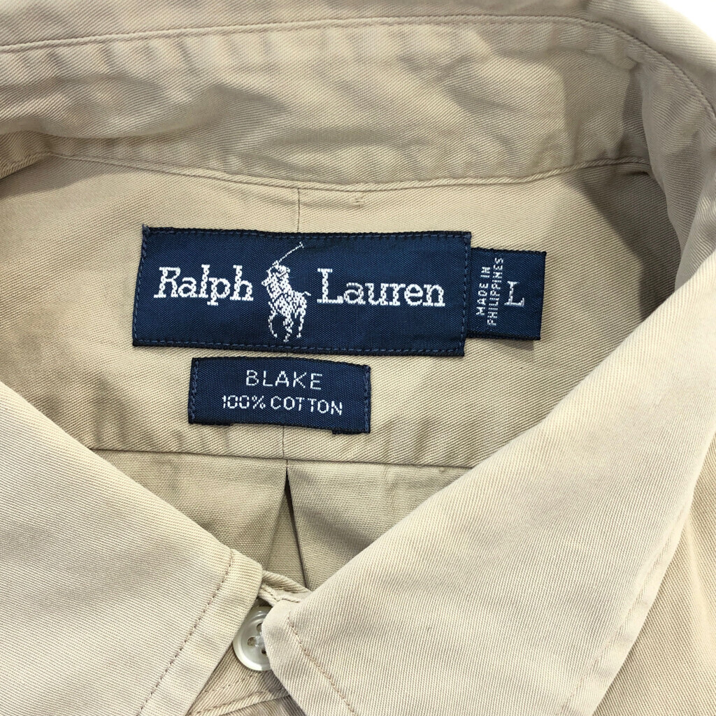 [商品管理番号] T2206 [ブランド] RALPH LAUREN/ラルフローレン [サイズ] L [実寸サイズ] 肩幅:約54cm 着丈:約84cm 身幅:約70cm 袖丈:約61cm [主な素材] 表地 : コットン [色] ベージュ [仕様] ボタンダウン BLAKE [状態] 汚れ:腹部、裾 キズ:袖先 破れ:首元 | |||