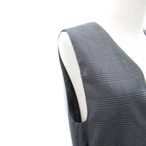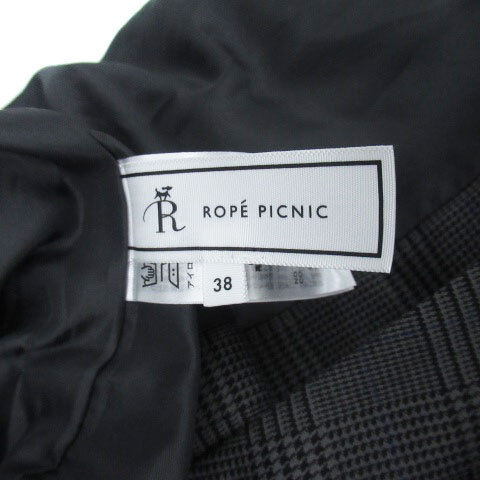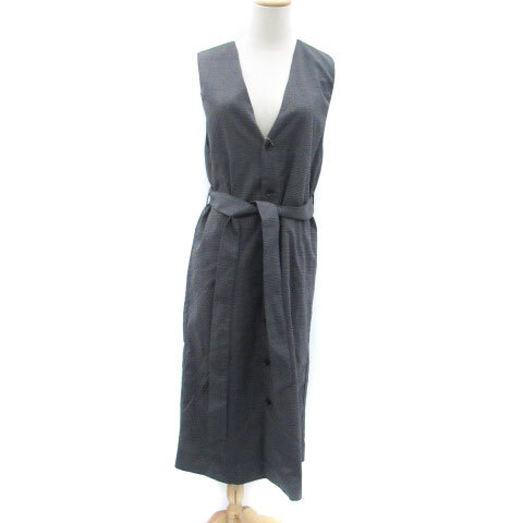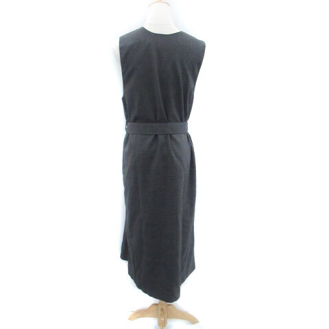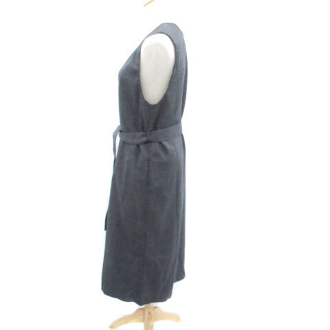 未使用品 ロペピクニック ジャンパースカート ワンピース Vネック ノースリーブ ロング丈 リボンベルト付き 38 M グレー 黒 ブラック レディース