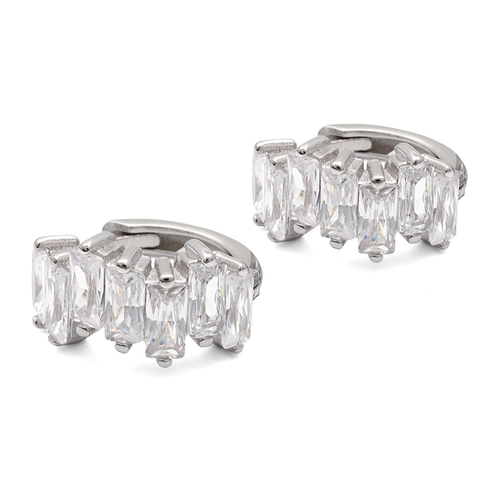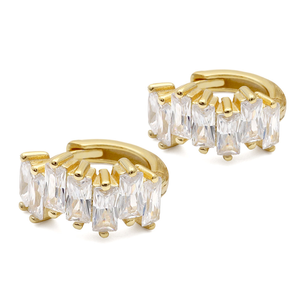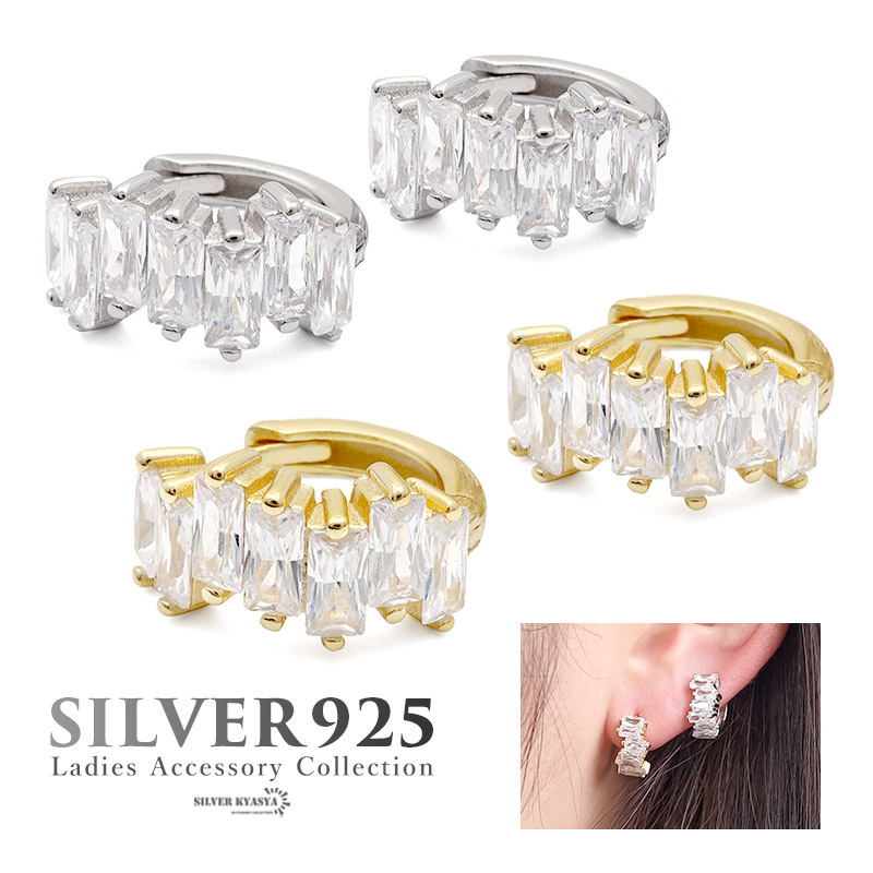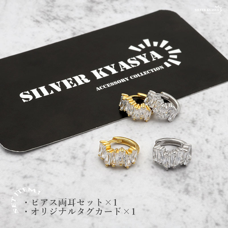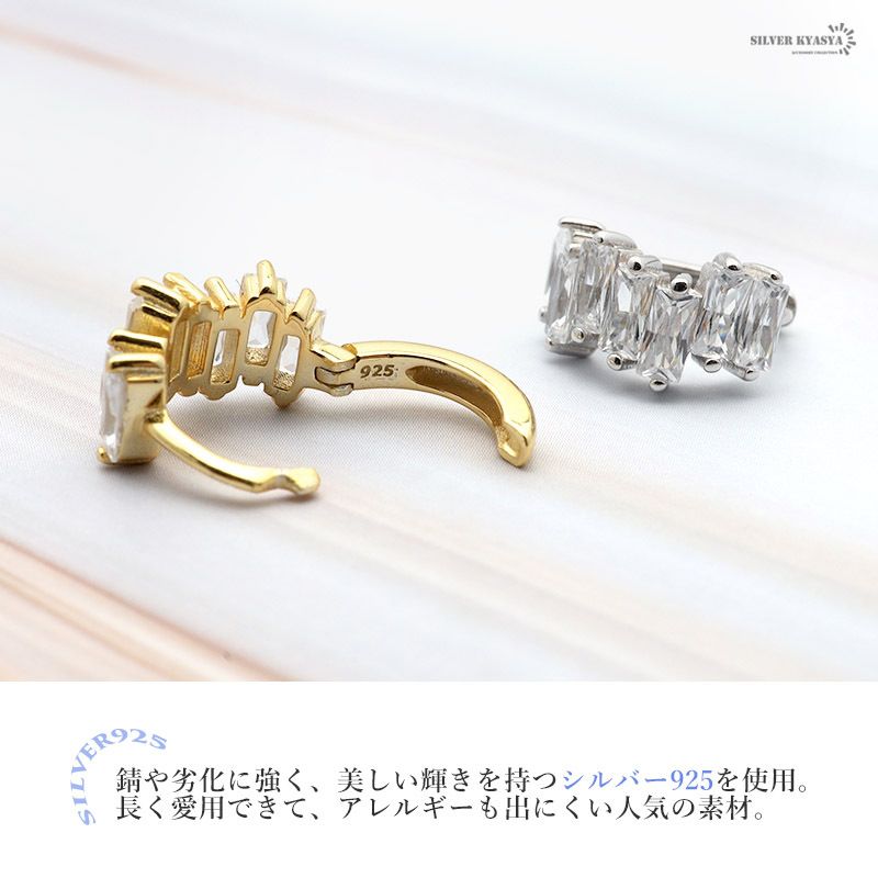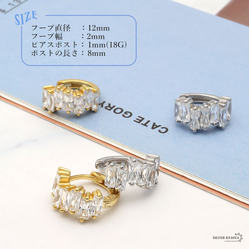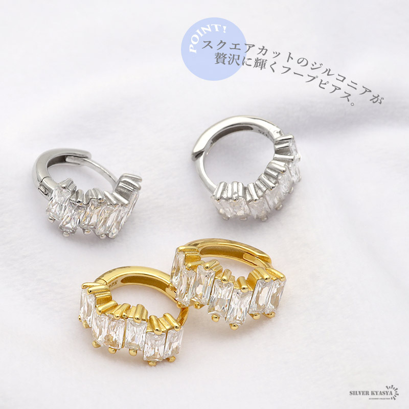 ■スクエアカットのジルコニアが輝く贅沢なフープピアス