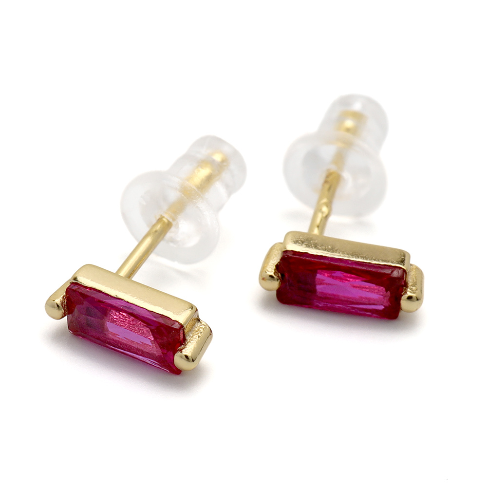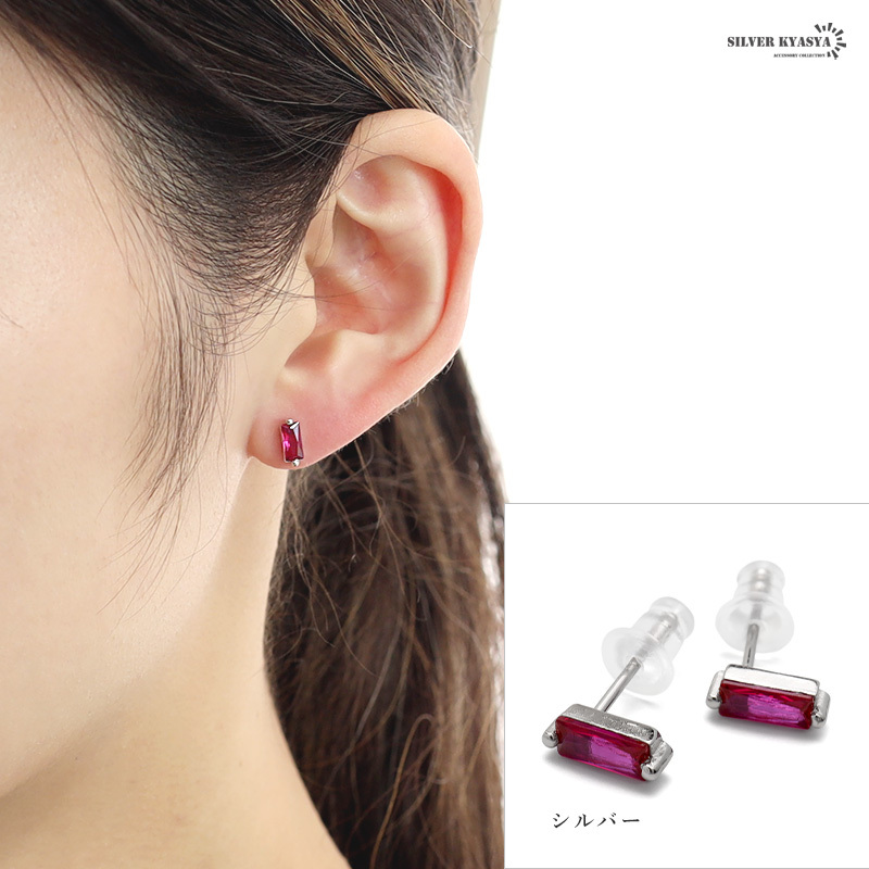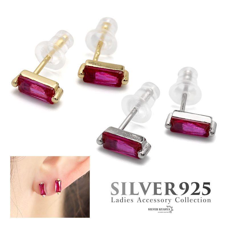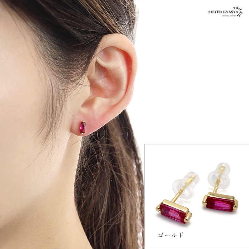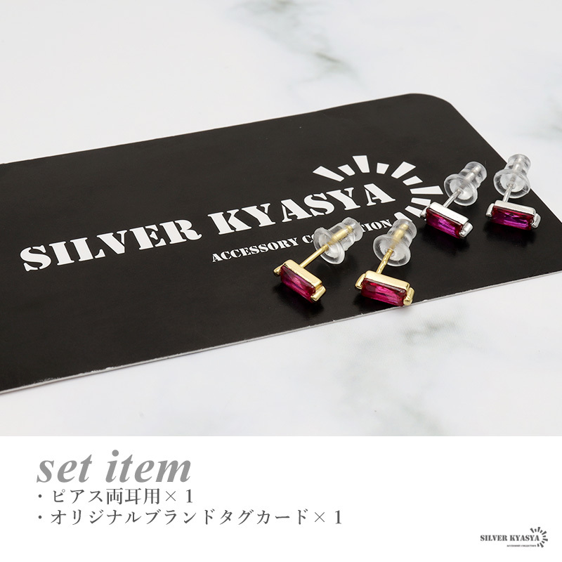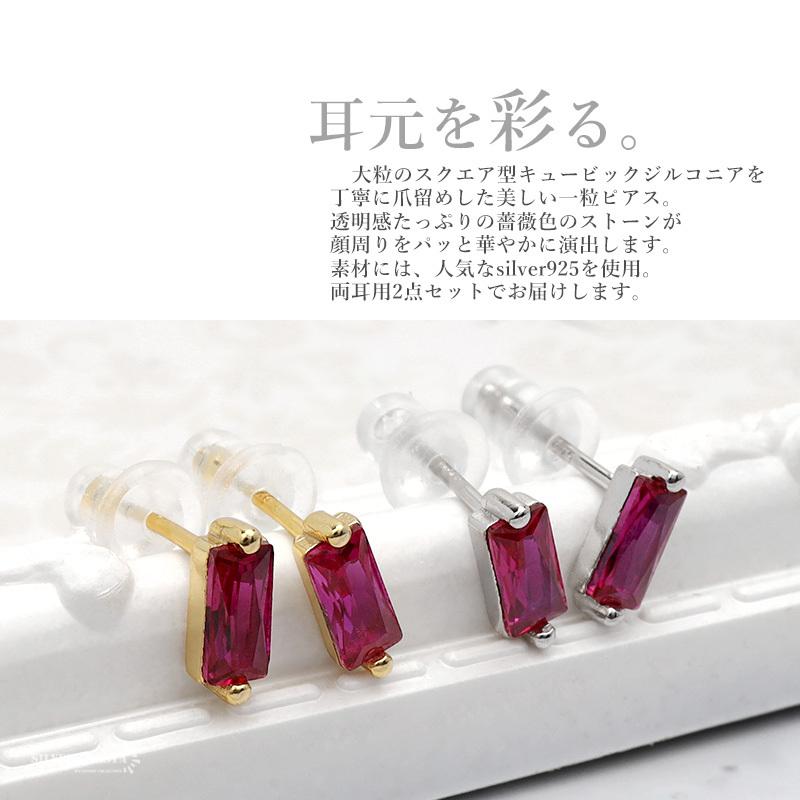 大粒のスクエア型キュービックジルコニア丁寧に爪留めした美しい一粒ピアス。透明感たっぷりの薔薇色のストーンが顔周りをパッと華やかに演出します。