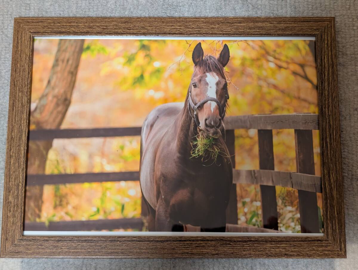 高品質印刷のオジュウチョウサン生写真、木製(茶色)フレーム付きA4サイズ。