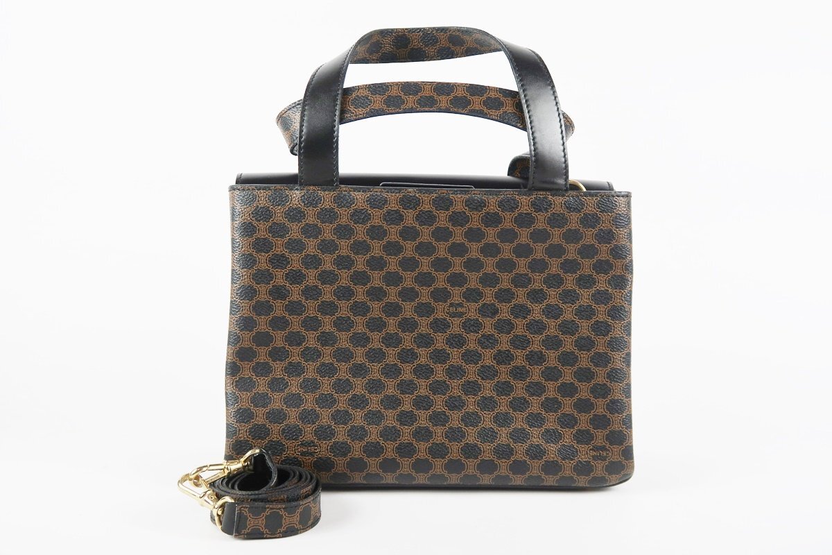 【美品】CELINE セリーヌ マカダム 2WAYショルダー ハンドバッグ ブランド鞄 ブラウン【SB81】 |