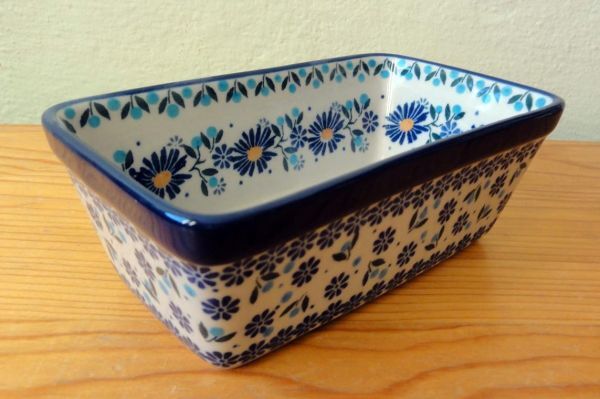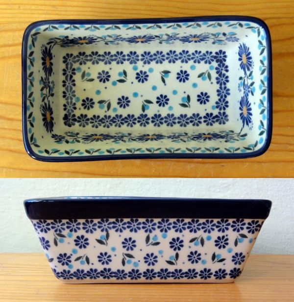 ポーランド ボレスワヴィエツ陶器 藍&水色花 15.5x9cm パウンドケーキ型/製菓型です。