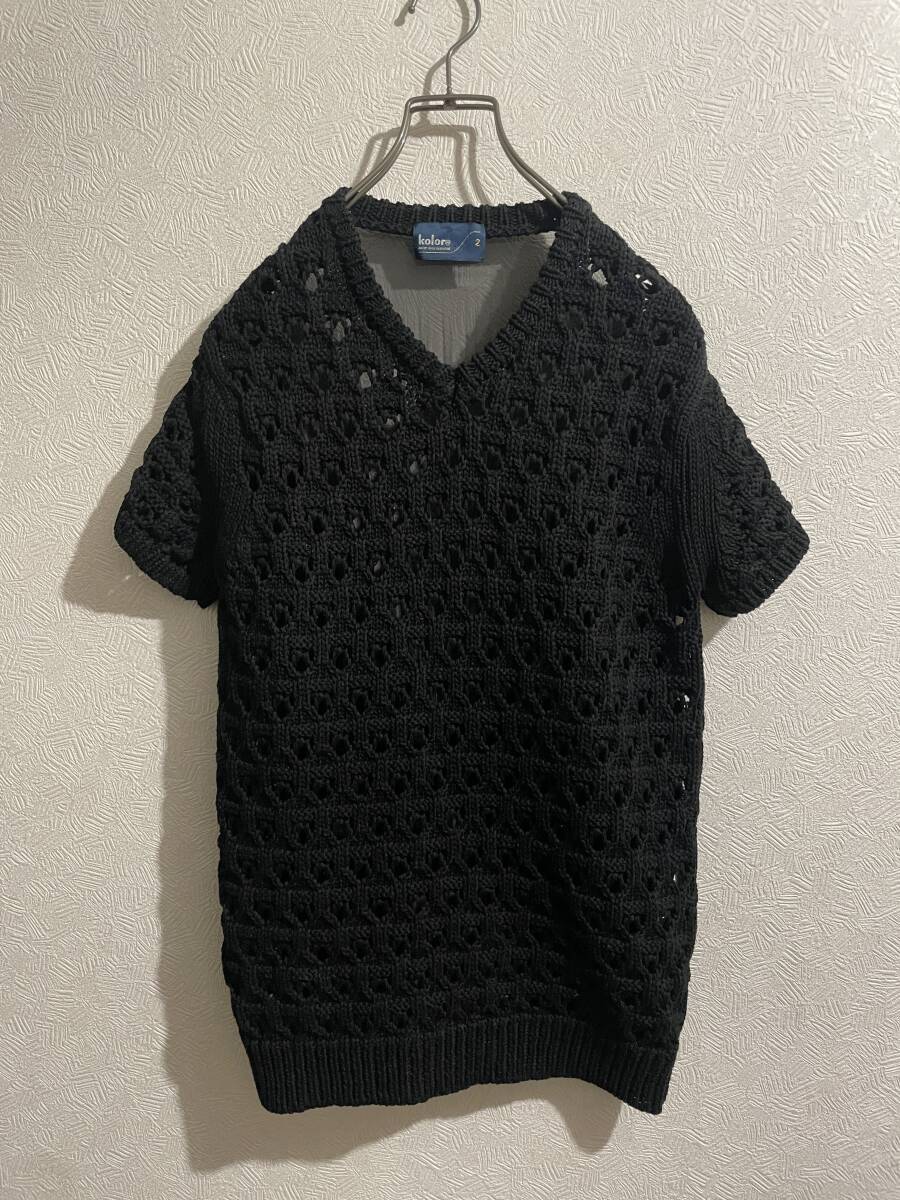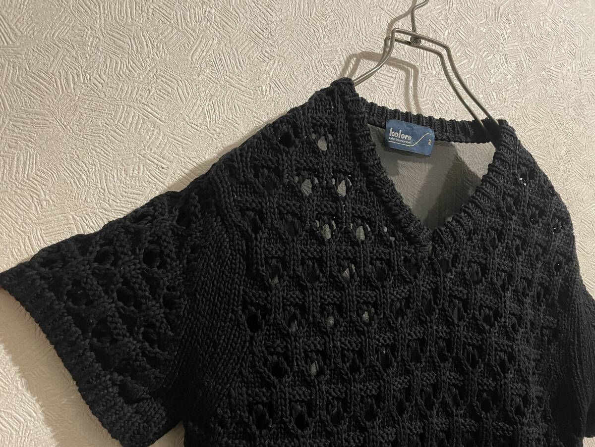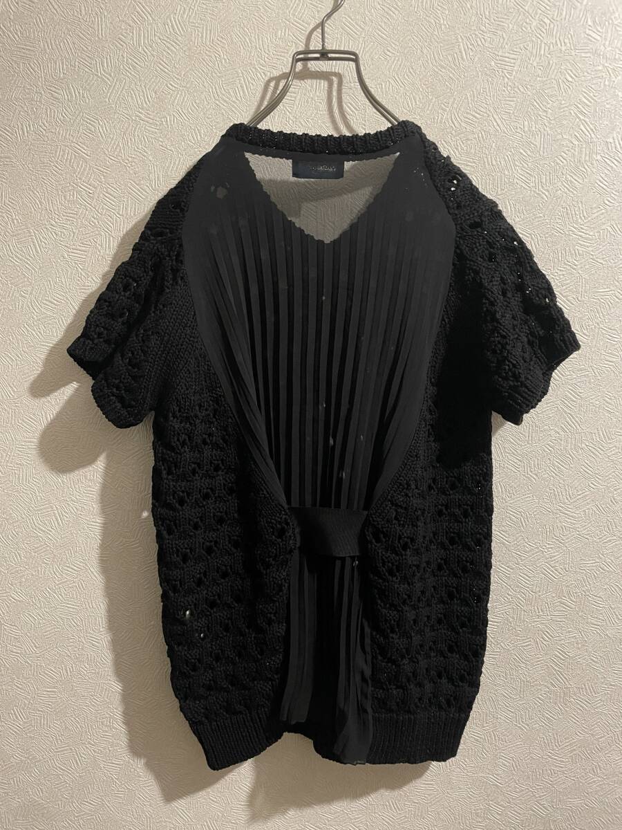 ◯ Kolor バック シフォン レース ニット / カラー 半袖 ショートスリーブ コットン プリーツ ブラック 黒 2 Ladies #Sirchive