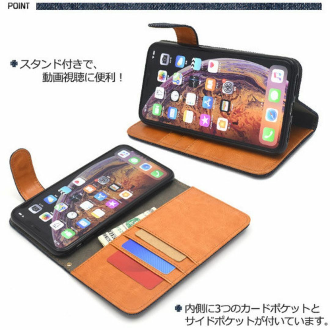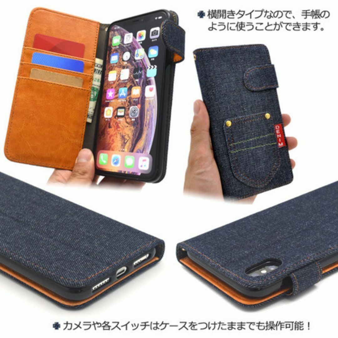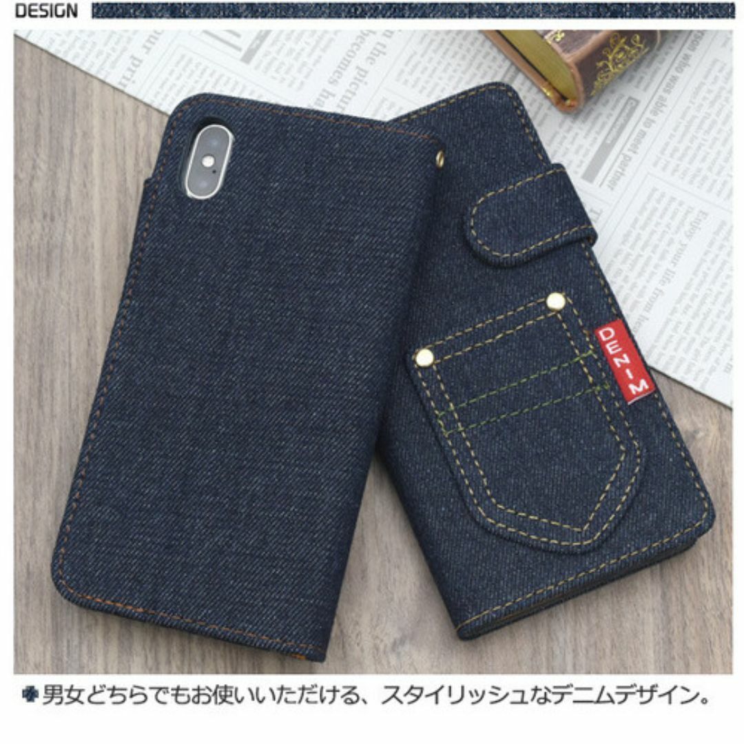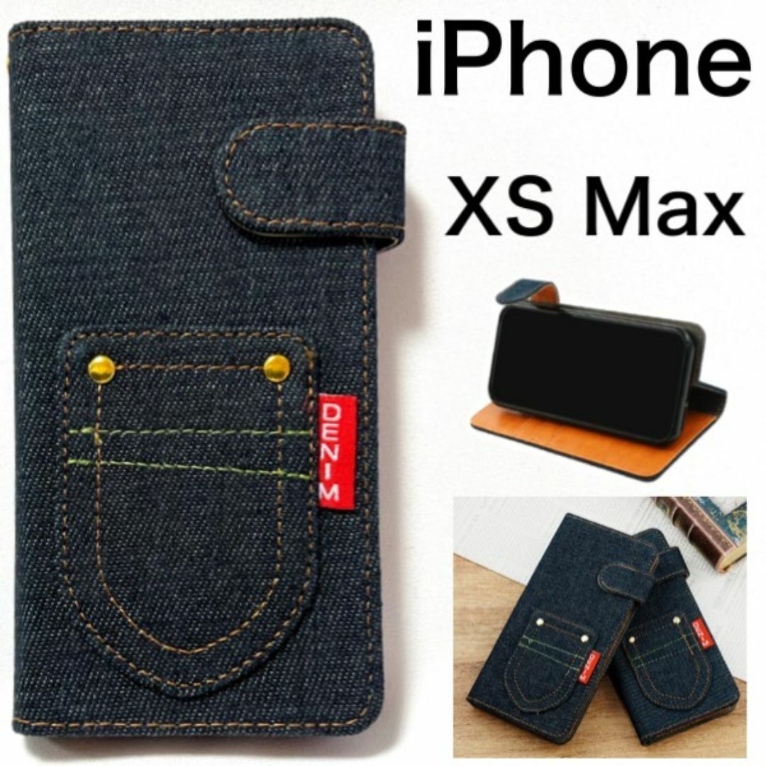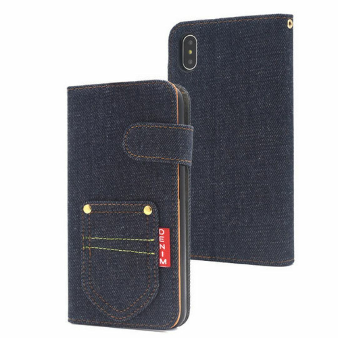 デニムデザインの iPhone XS Max用スタンドケースポーチ。
