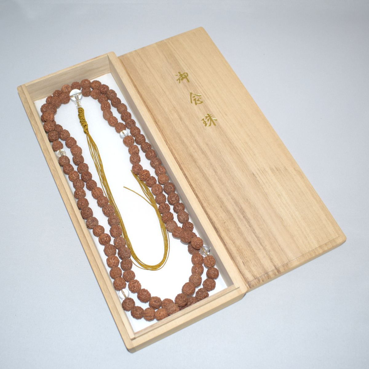 商品説明 | 主玉(金剛菩提樹) 約 12mm 天玉(水晶) 約 10mm 親玉(水晶) 約 14mm 輪の引き伸ばしサイズ 約 63cm |
