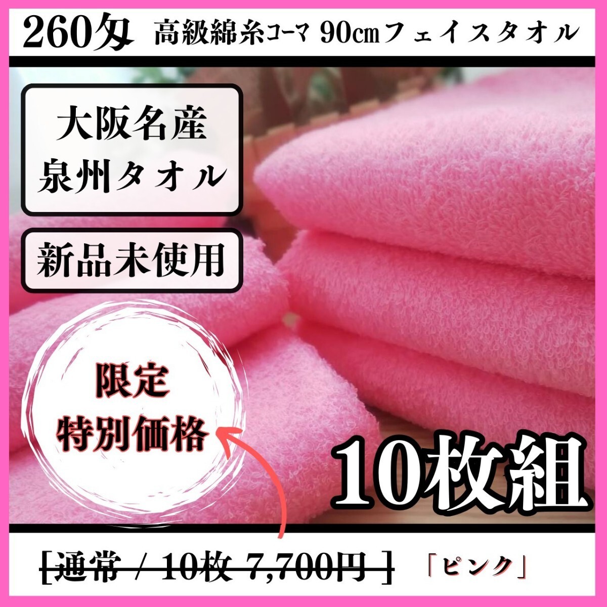 【泉州タオル】260匁高級綿糸コーマコットンピンクフェイスタオルセット10入枚 タオル新品 長さ90cm タオルまとめて 吸水性抜群
