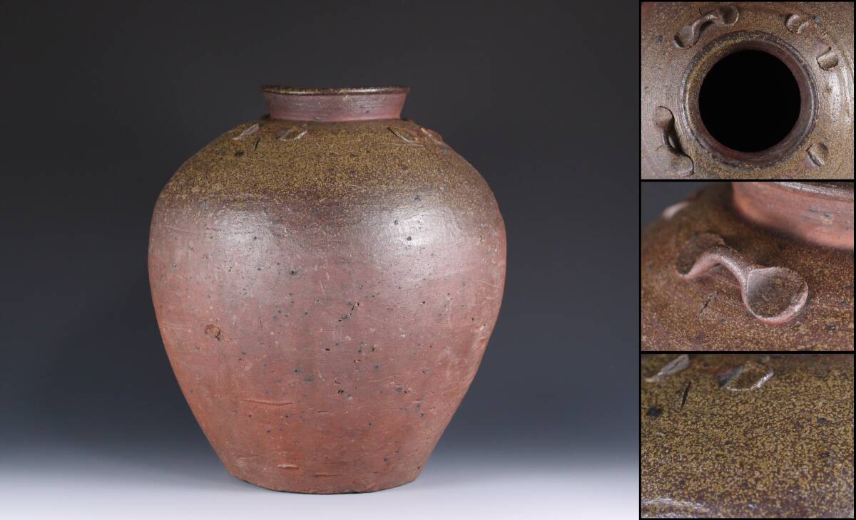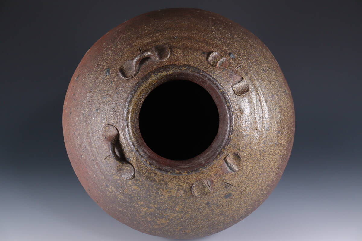| 商品説明 | 商品名:蔵出し品 コレクター収蔵品 古備前 桃山時代 胡麻出来 四耳壷 時代保証 付属品:なし。 サイズ:高さ28cm、口径10,7cm、肩幅26cm、高台13,5cm。 状態:耳に欠けが2か所、口縁に欠けが1か所ございます。 |