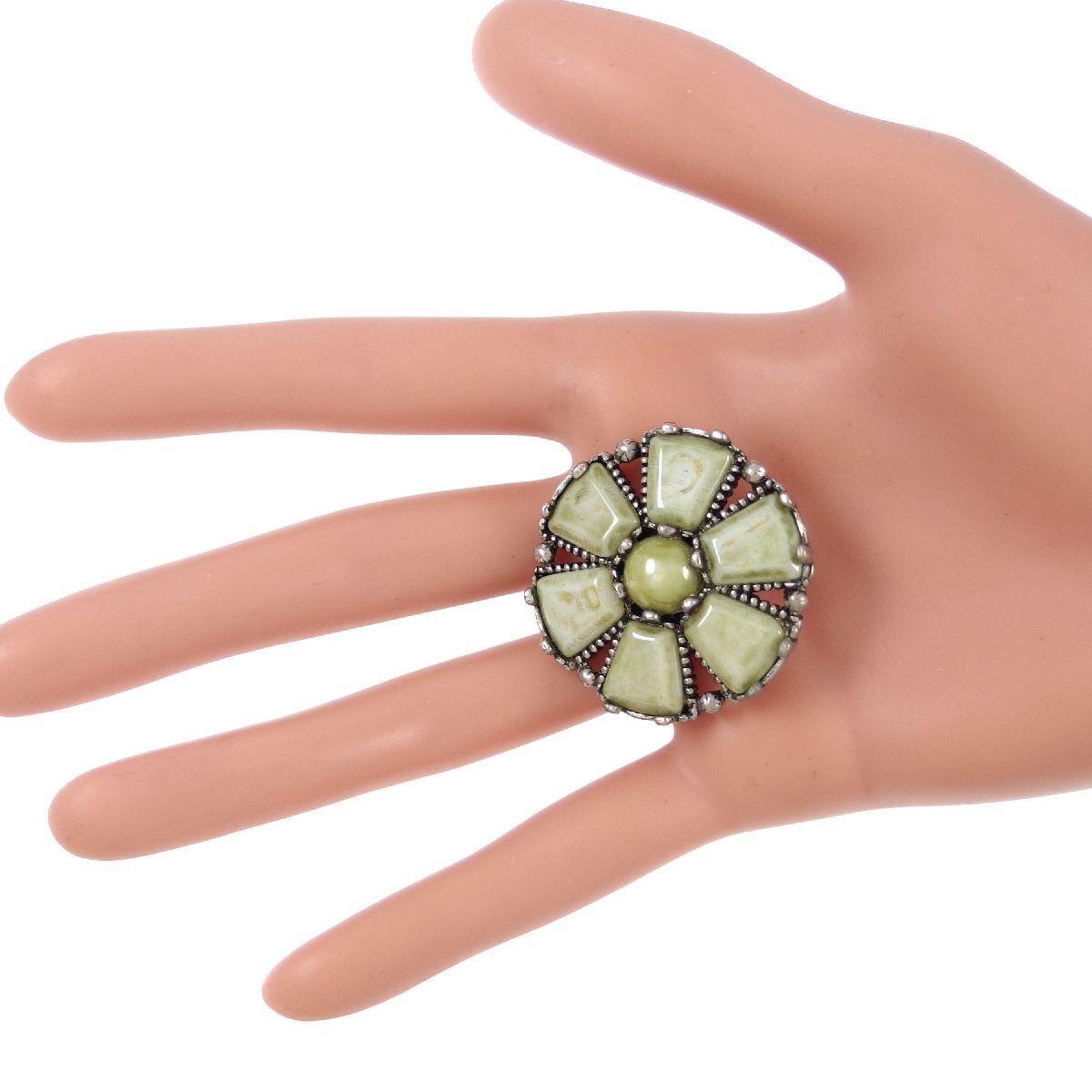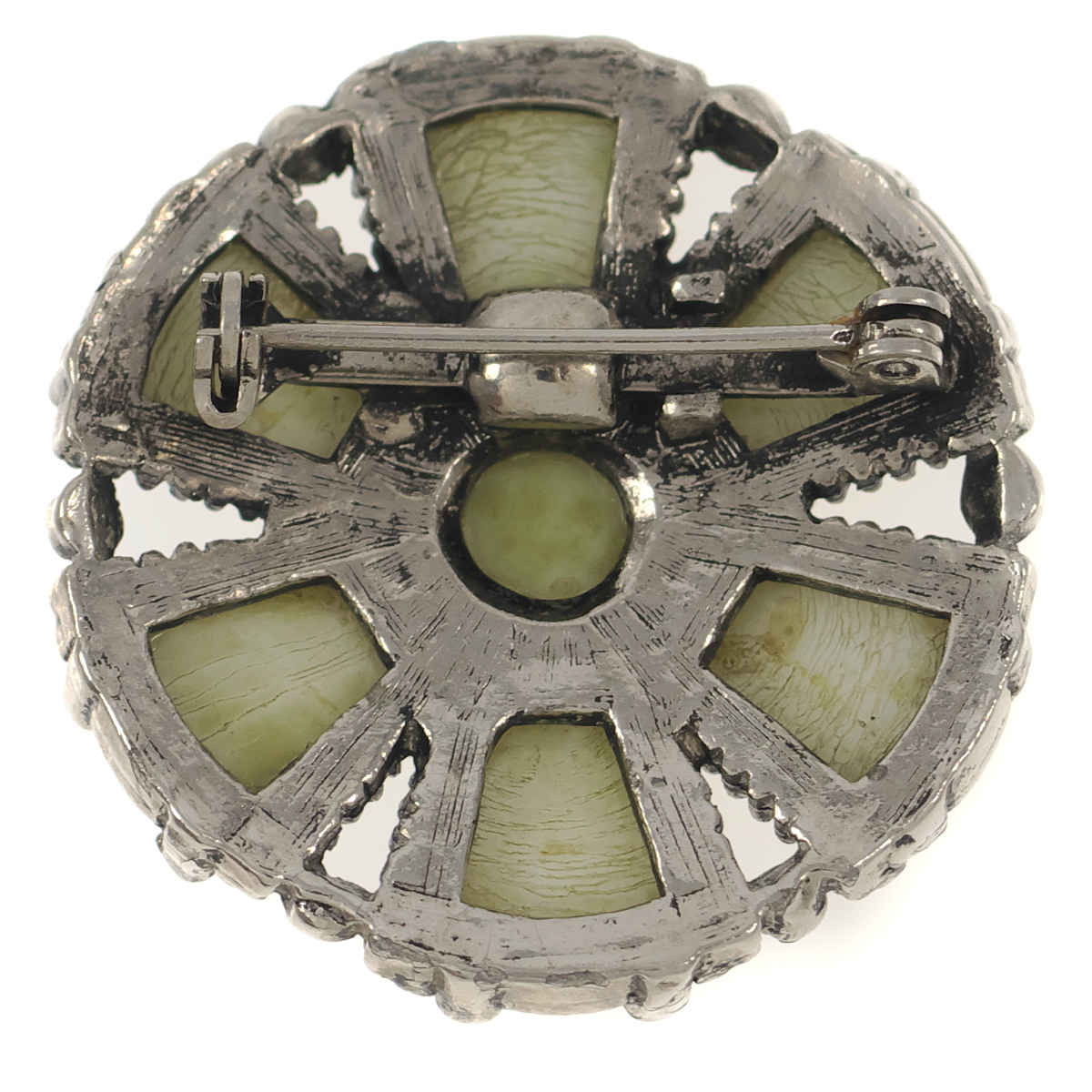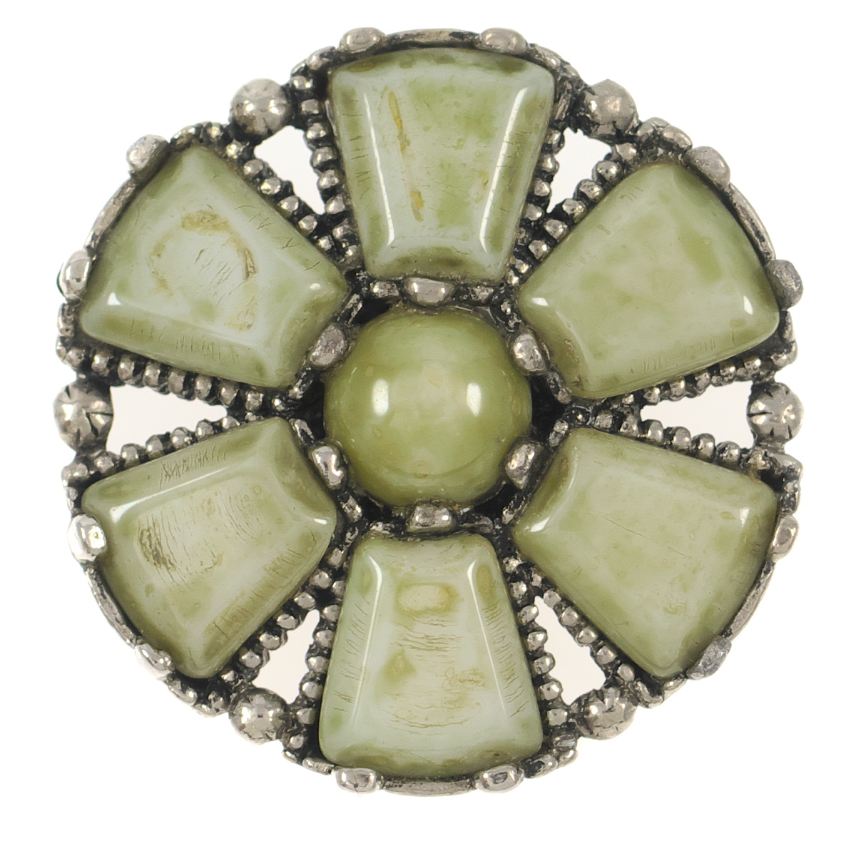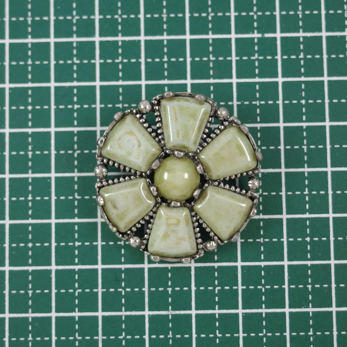 UK3116◆ フラワーモチーフ うすいグリーン系マーブルストーン 色石 ケルト イギリス 英国 ◆ ヴィンテージブローチ ◆