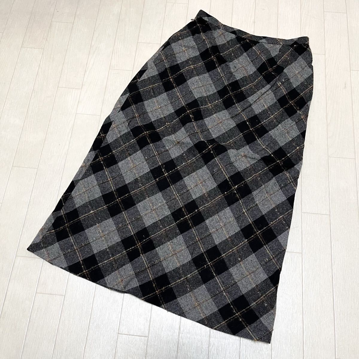和656★ Leilian レリアン ロングスカート チェック ウールブレンド 日本製 9 グレー ブラック レディース