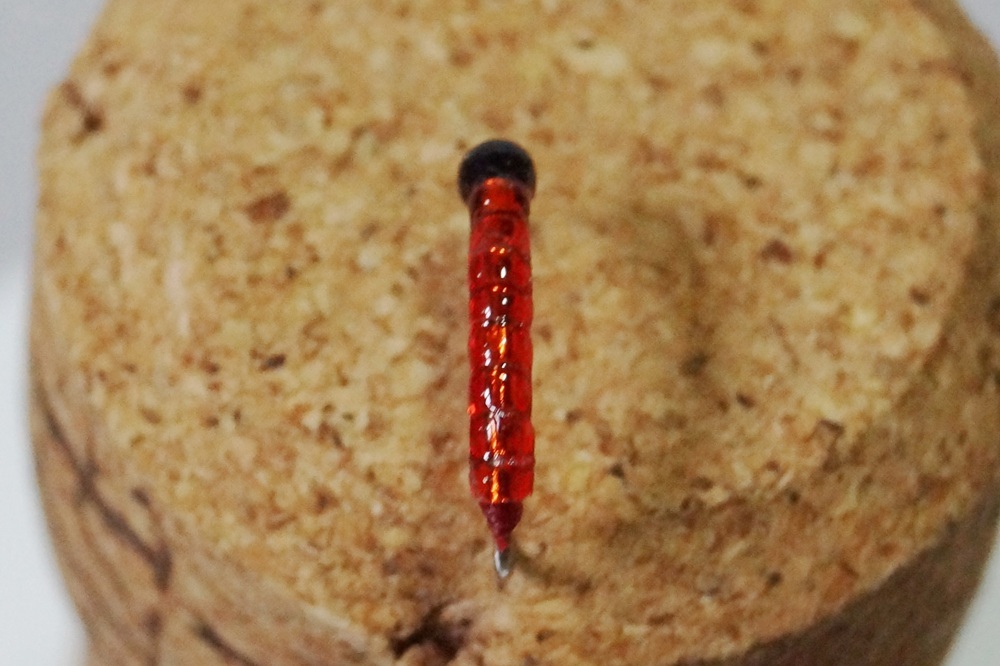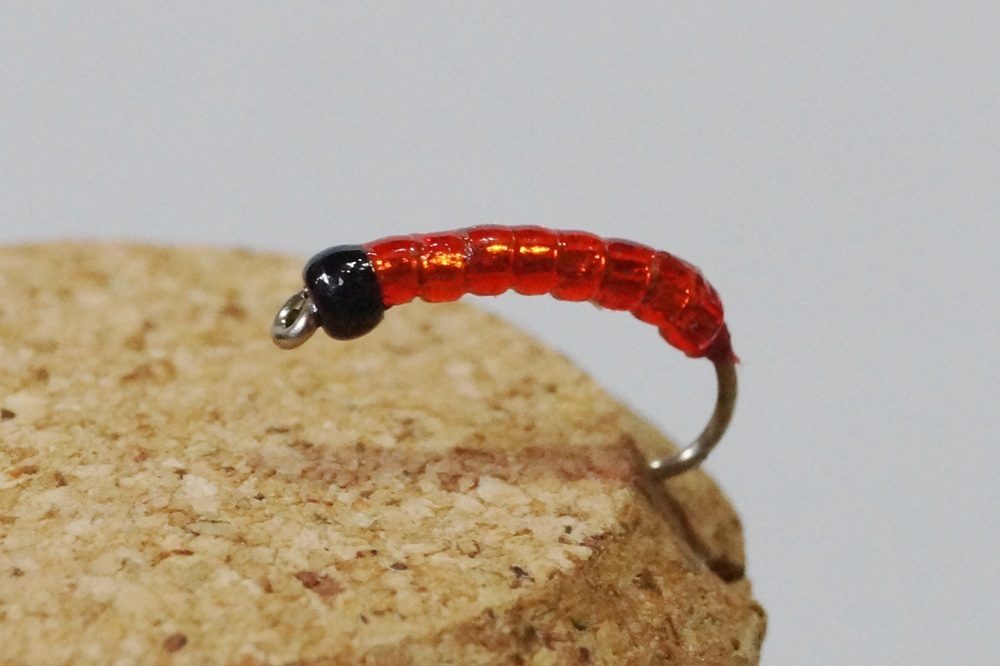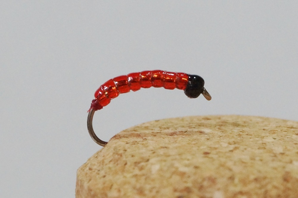 表面が透明感のある赤、内側が銀色に着色されたビーズを使用したアカムシパターンです。ビーズの隙間が水生昆虫の腹節を思わせ、赤いビーズ越しに銀色部分が輝きトラウトにアピールします。本体がガラス製ですので、硬い物にヒットすると割れ易いのでご注意下さい。#12バーブレスの7本セットです。発送は定形外郵便を予定して居りますが、破損・紛失で補償されませんのでご了承下さい。