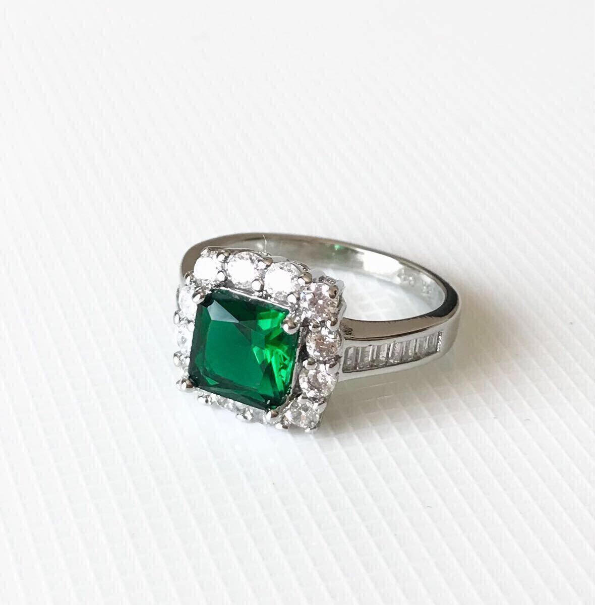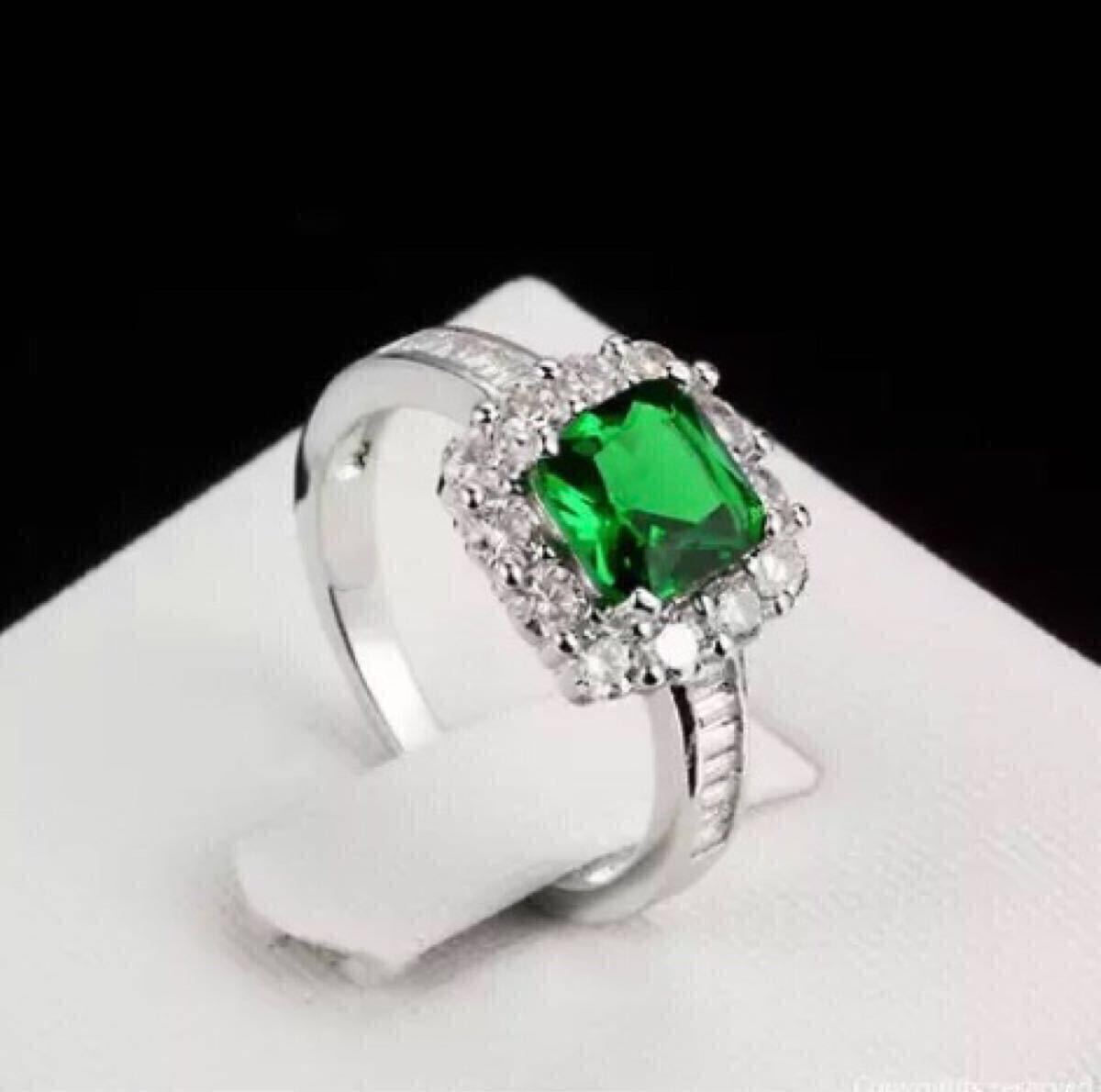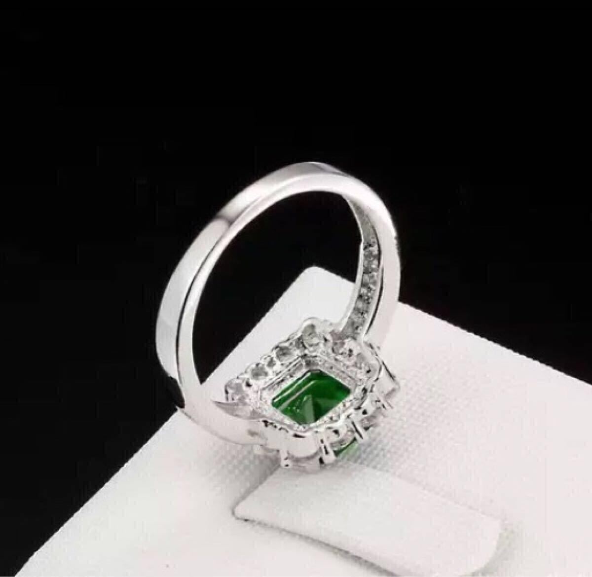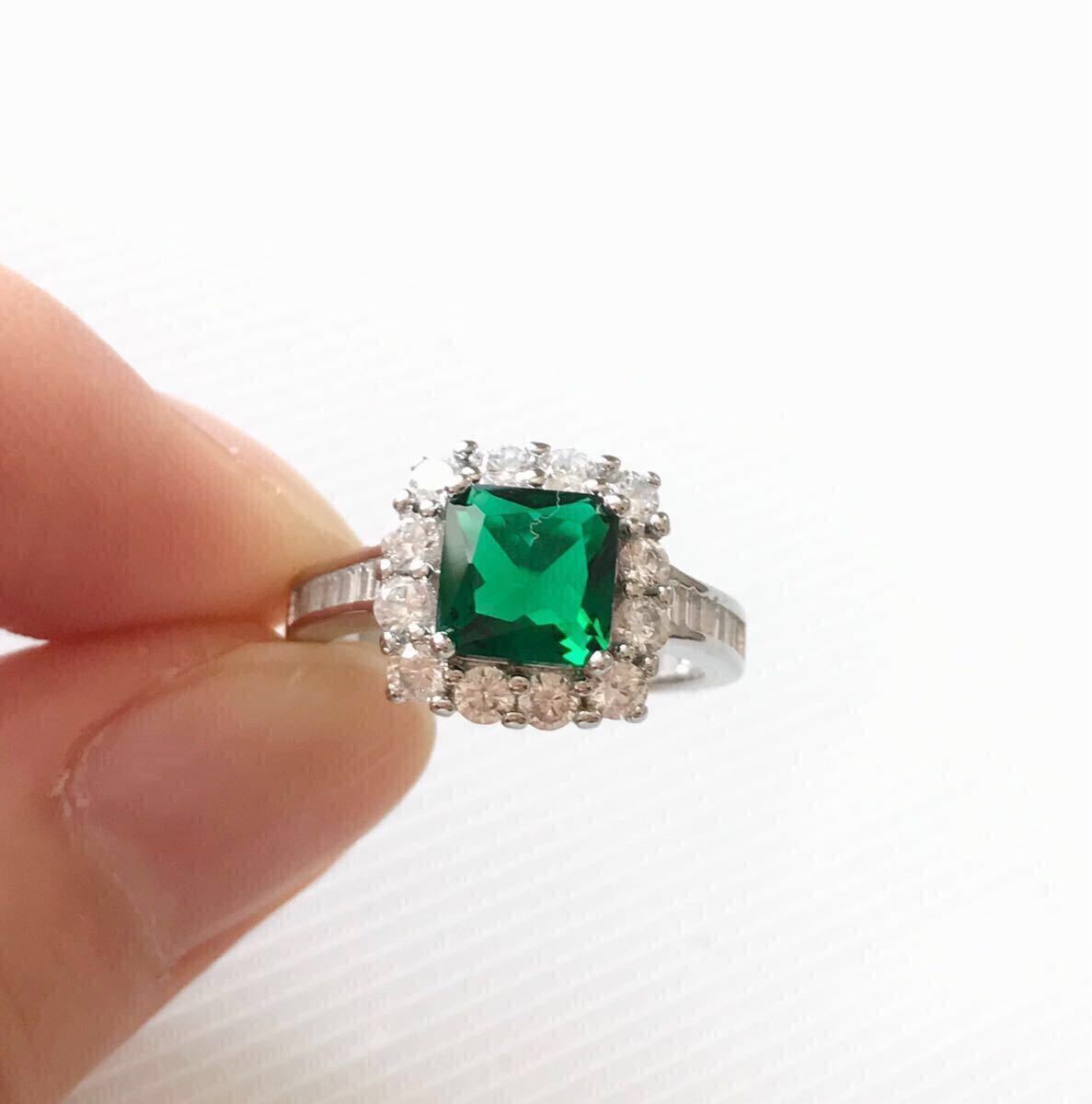 大粒 AAA+ CZ エメラルド スクエアリング
