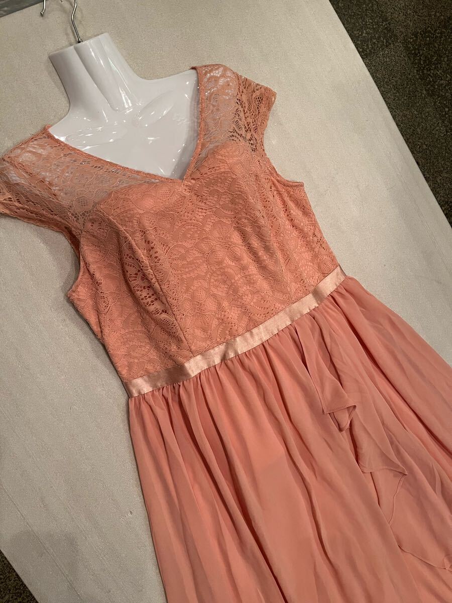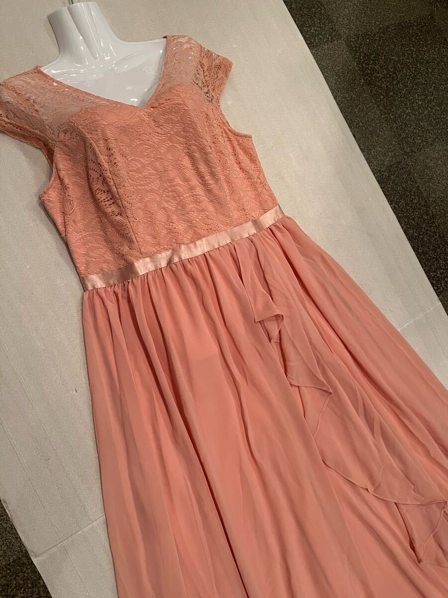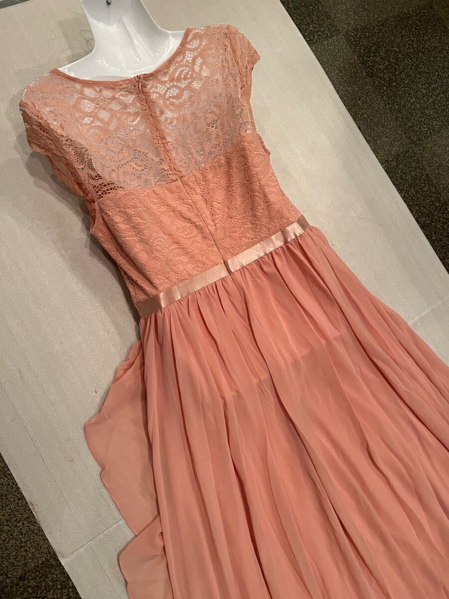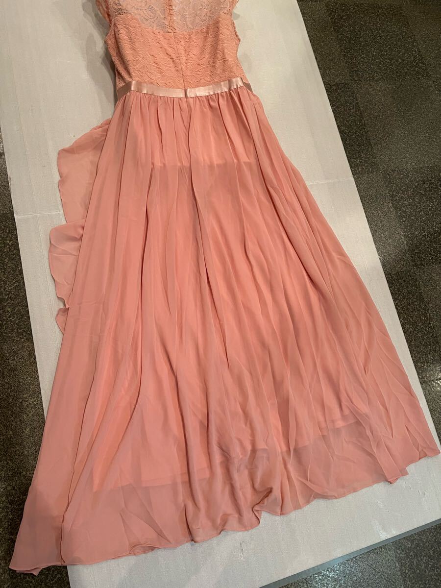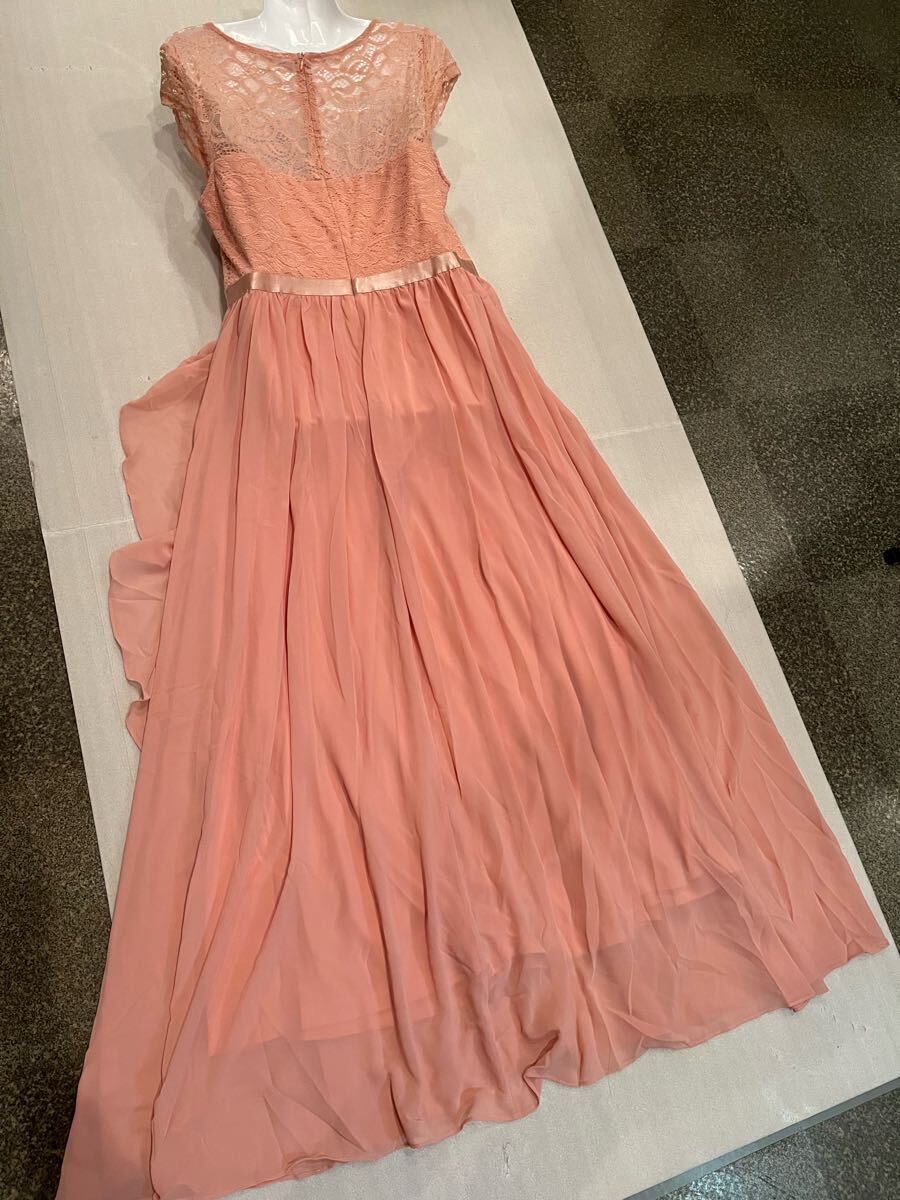 ◆胸元レース、スカート部分シフォンのような柔らかな素材です。