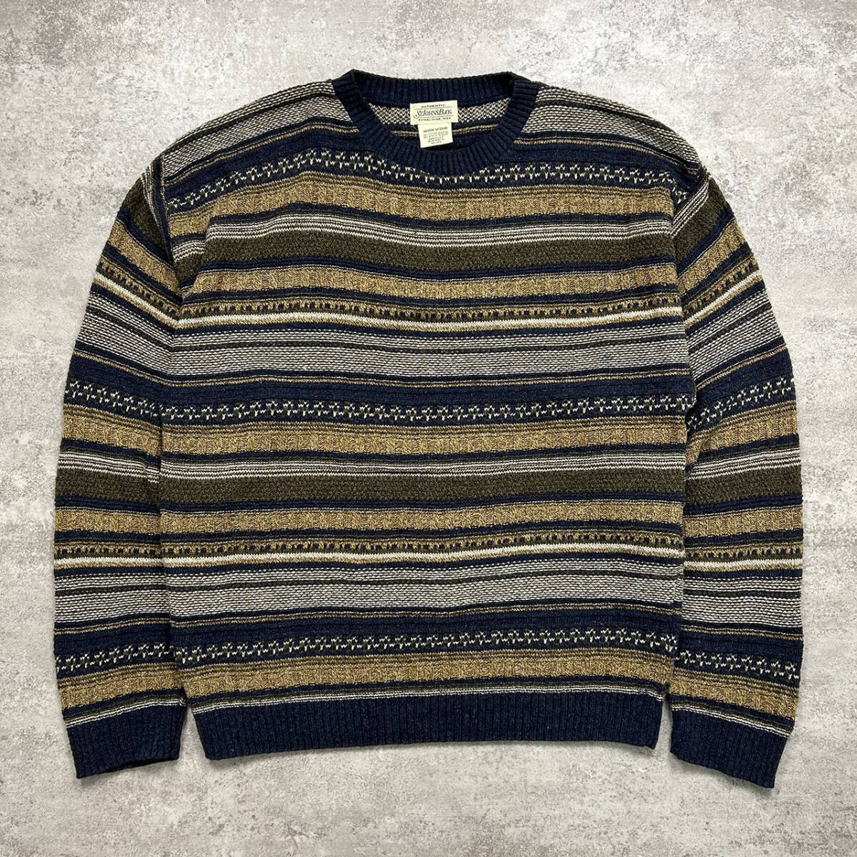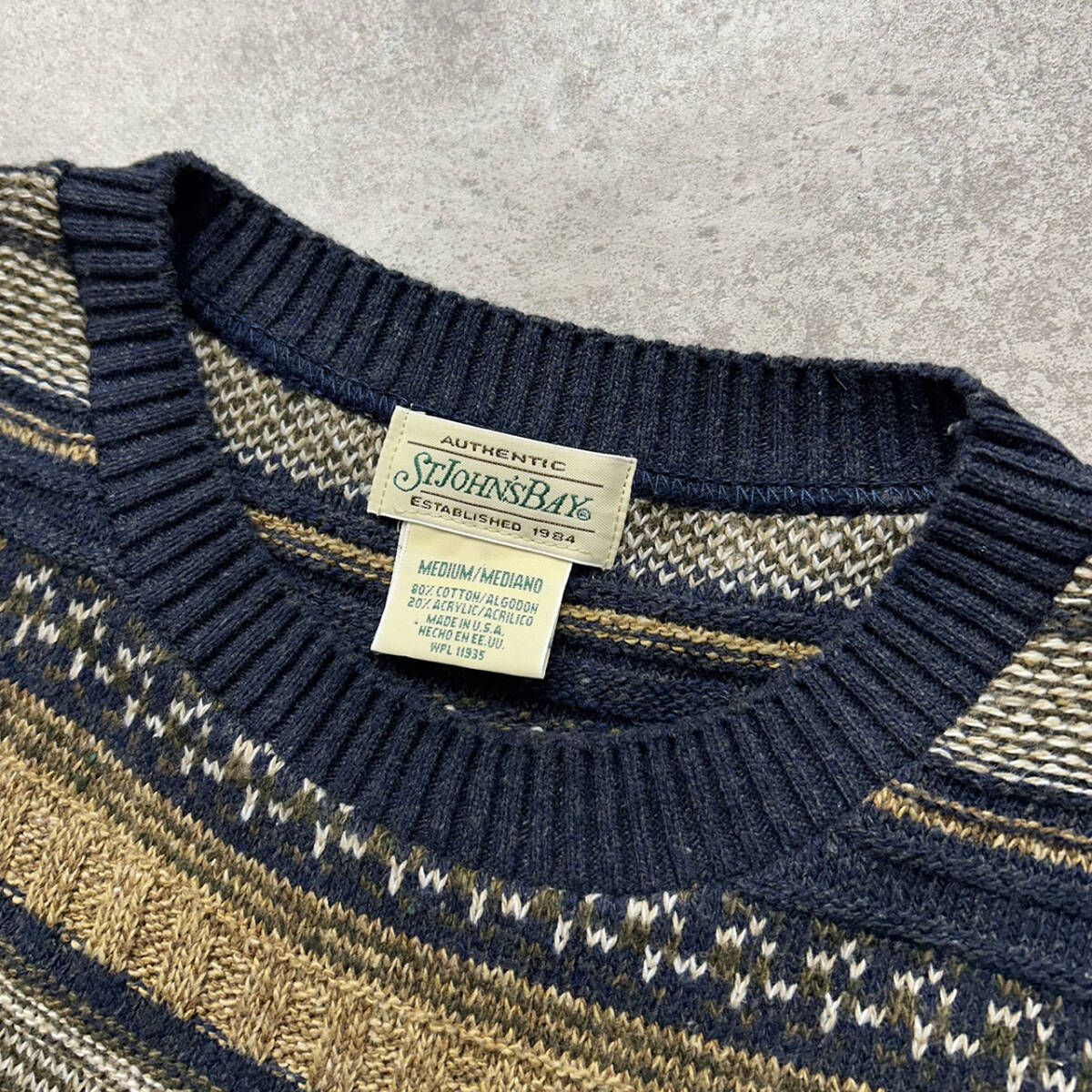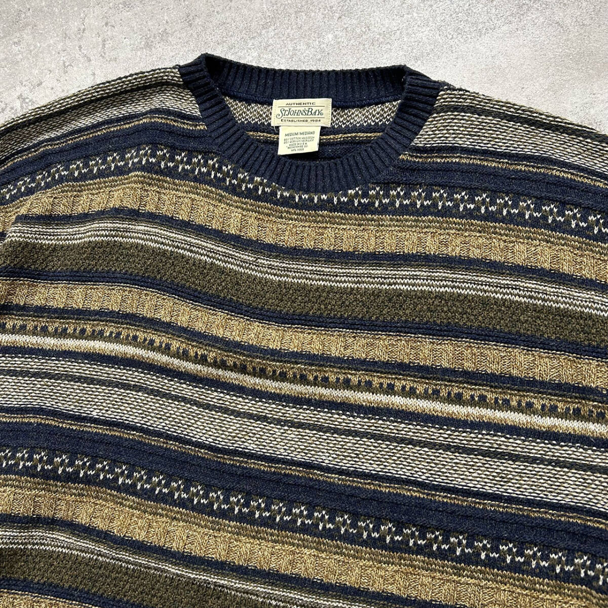90s セントジョンズベイ コットン ブレンド ニット セーター 柄 ストライプ サイズ M アメリカ製