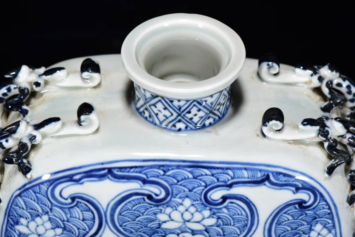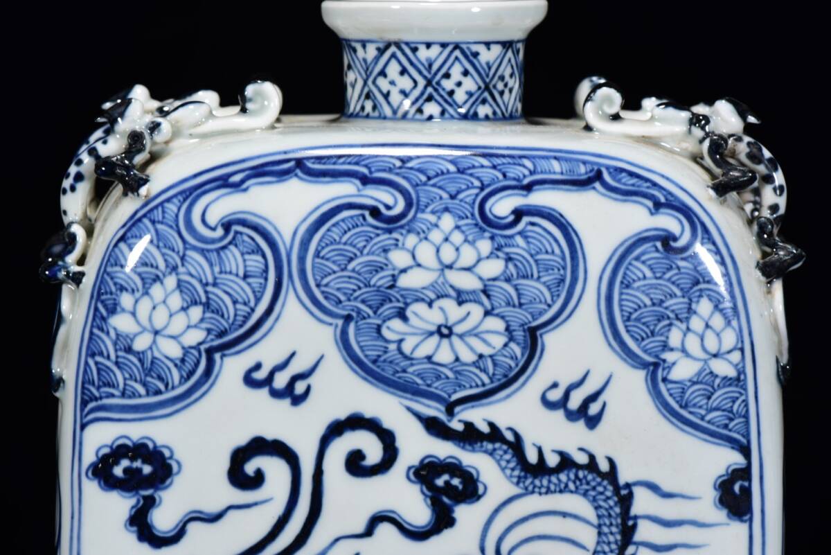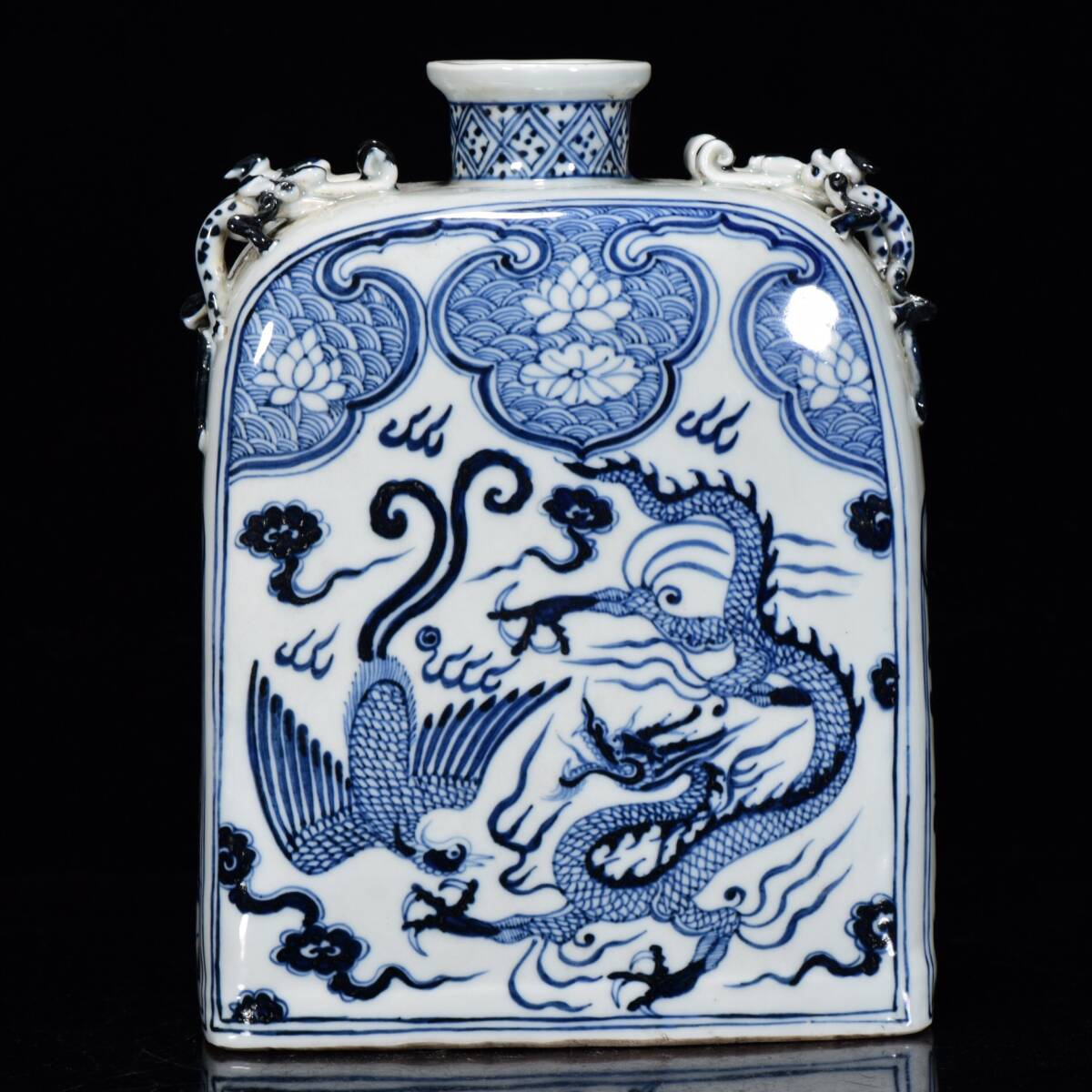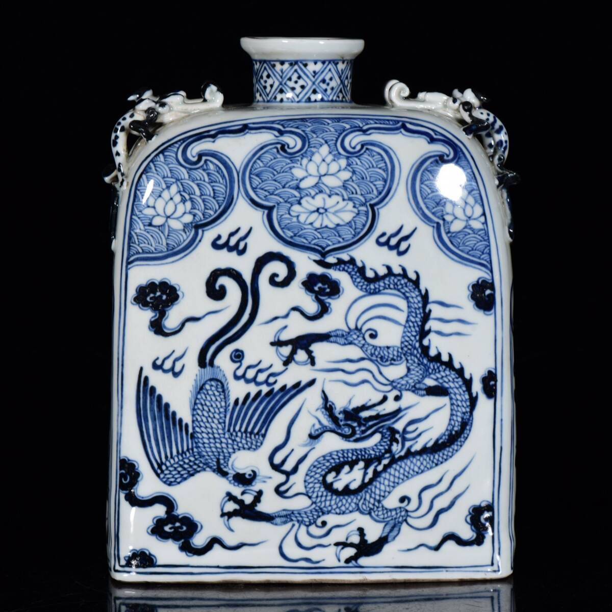 | 【蔵友館蔵品・元・古陶瓷品・青花・龍鳳紋・扁瓶】・希少珍品・置物・賞物・中国時代美術 |