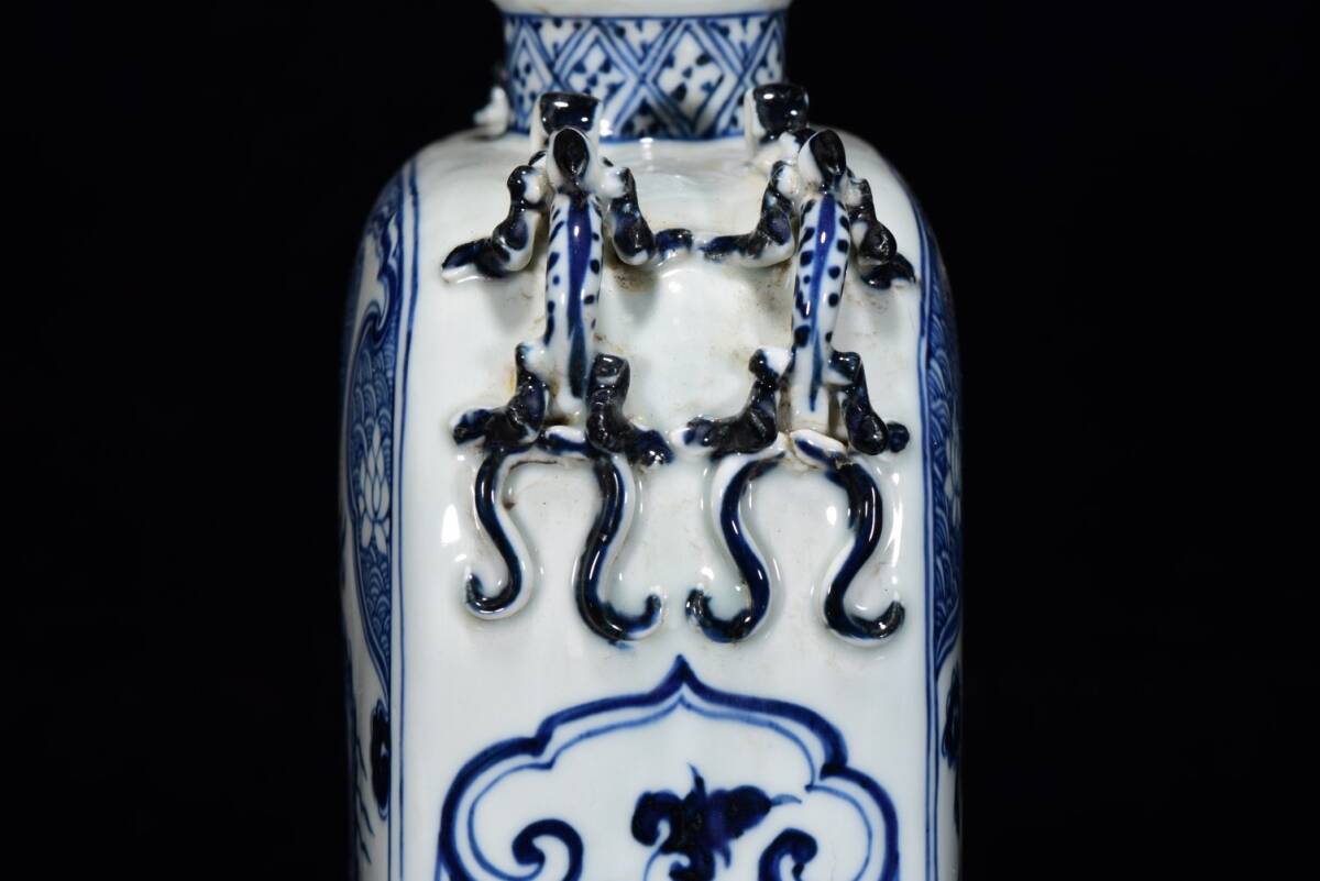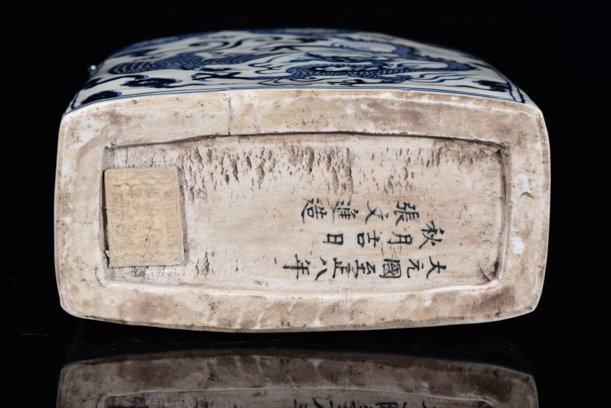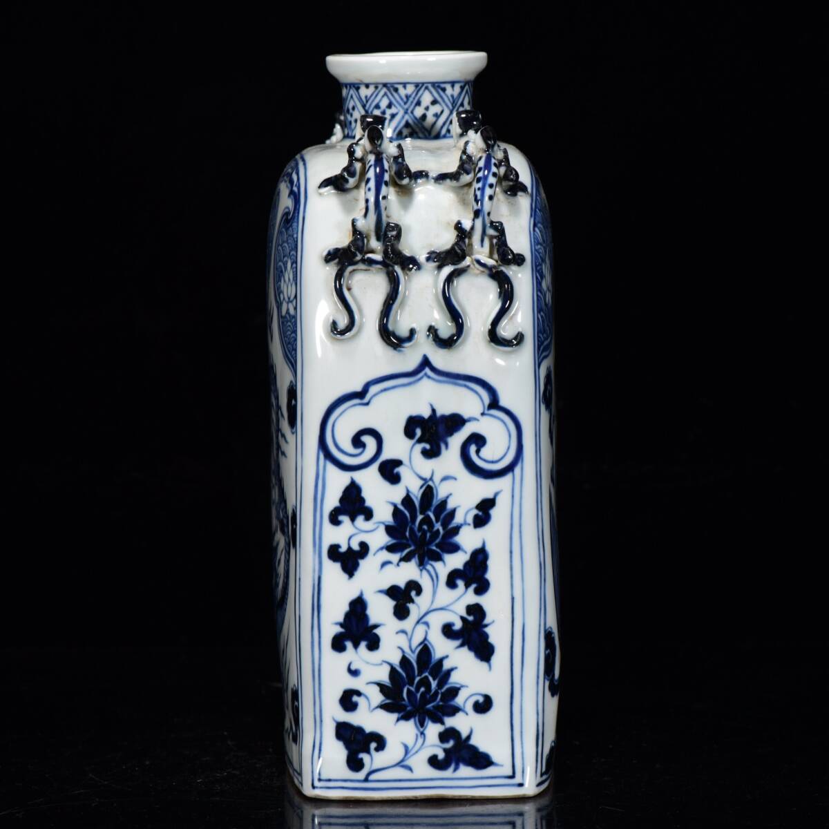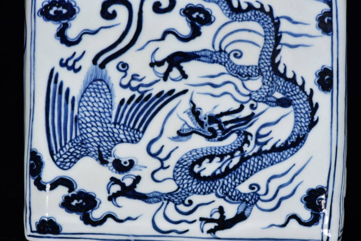 | 【蔵友館蔵品・元・古陶瓷品・青花・龍鳳紋・扁瓶】・希少珍品・置物・賞物・中国時代美術 |