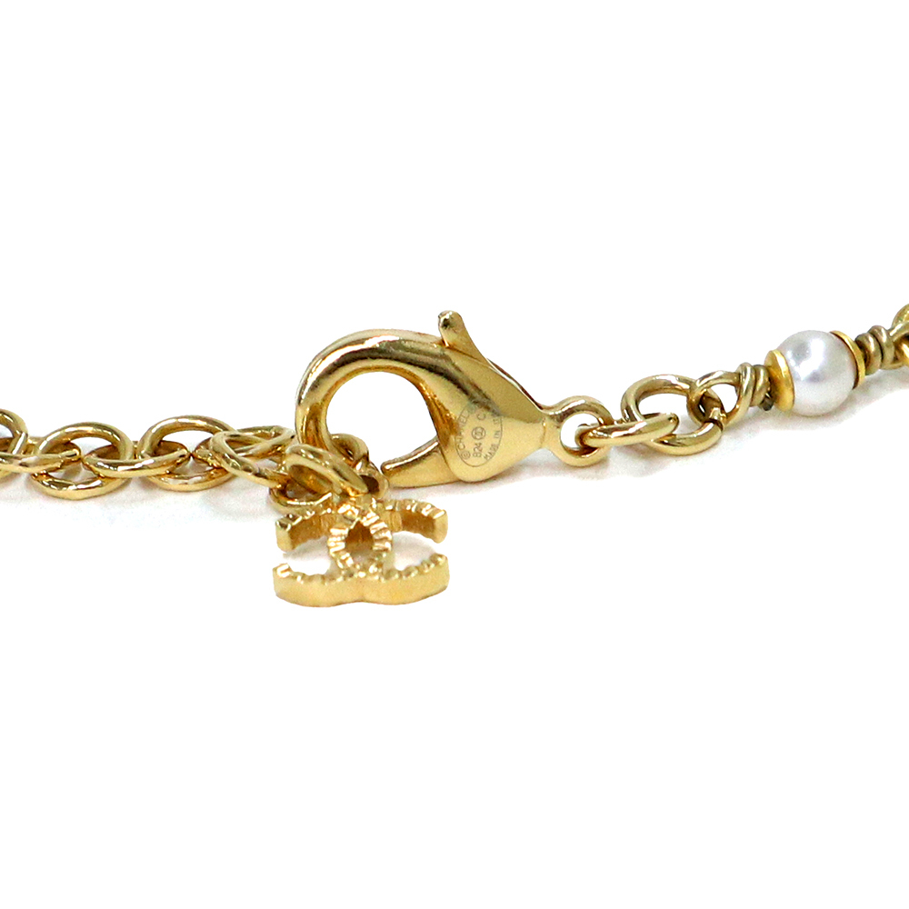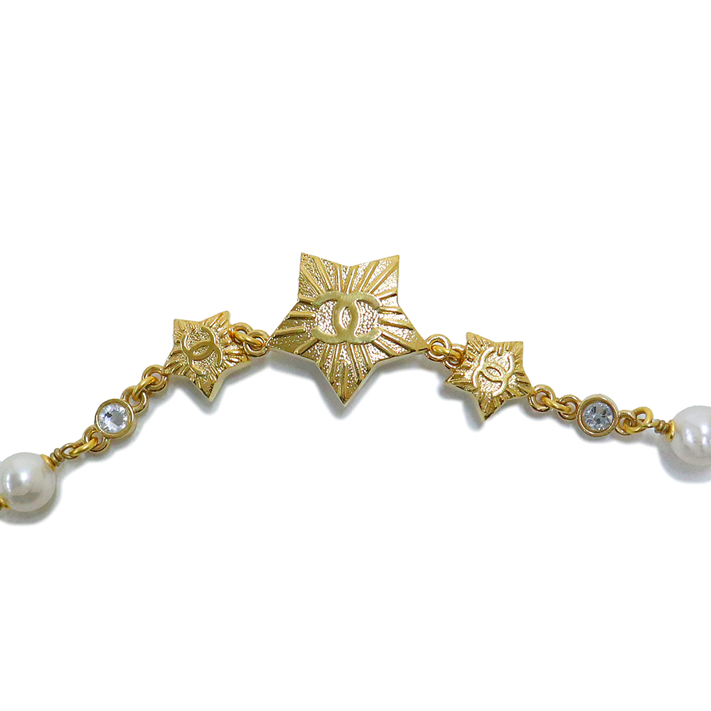 (未使用保管品)シャネル CHANEL スター ココマーク パール チョーカー チェーン ネックレス レジン ストラス メタル ゴールド ABC430