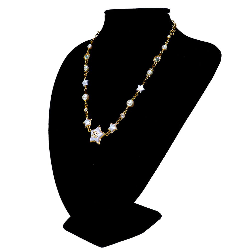 ココマークと星型がモチーフのCHANELネックレス。モチーフには、バロックパールが使われてます。コーディネートに、こちらを身につけていただくだけで、グッとセレブな印象になります。普段使いからパーティーまで幅広いシーンでお使いいただけます。