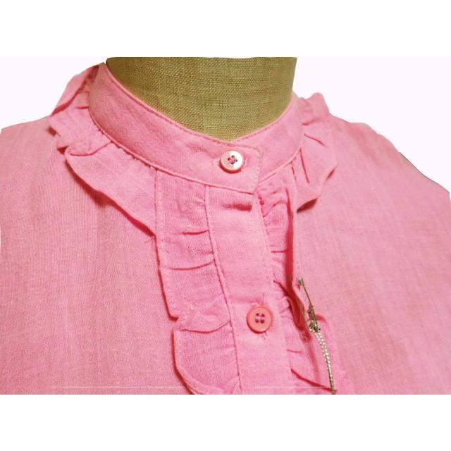 r818 昭和レトロ 長袖ブラウス 9号 ピンク(ゲイギブソン・内外編物)麻混・フリル 60年代70年代