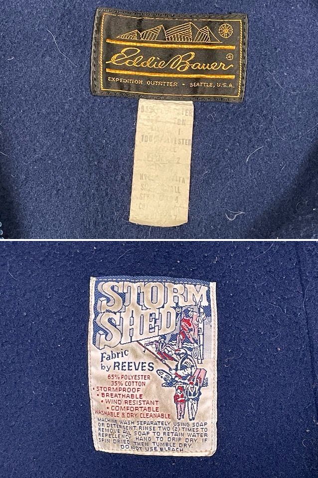 | 説明 | 80年代頃のエディバウアーのマンパです STORM SHED FABRICシェルにフリースライニング ネイビー特有のフェードが多少ありますがいい感じの雰囲気です。 |