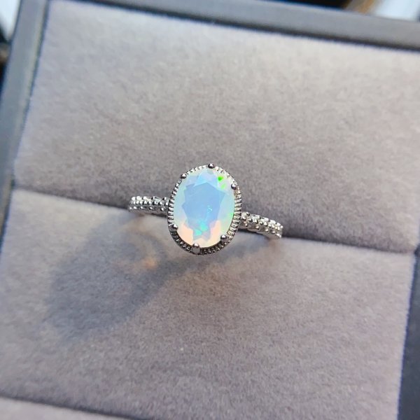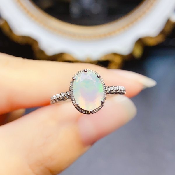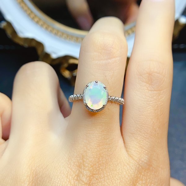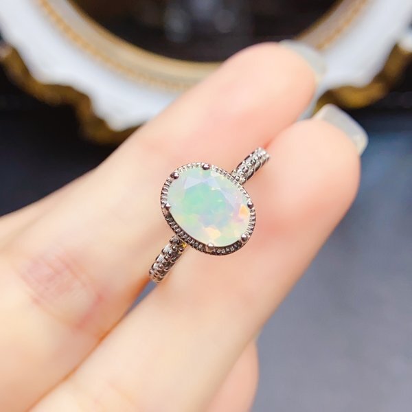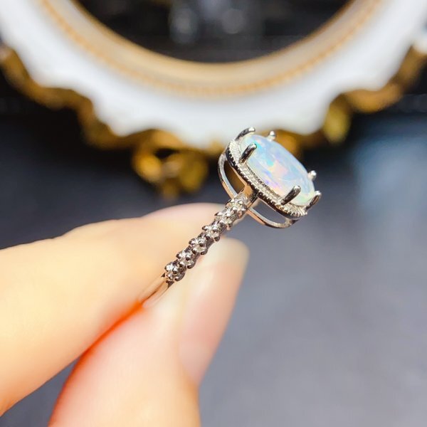 女性用ナチュラルオパールリング、 7×9mm、高級s925スターリングシルバー、ウェディングジュエリー、ファッションアクセサリー