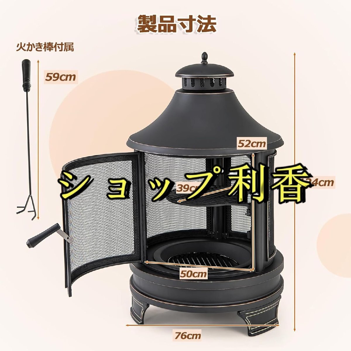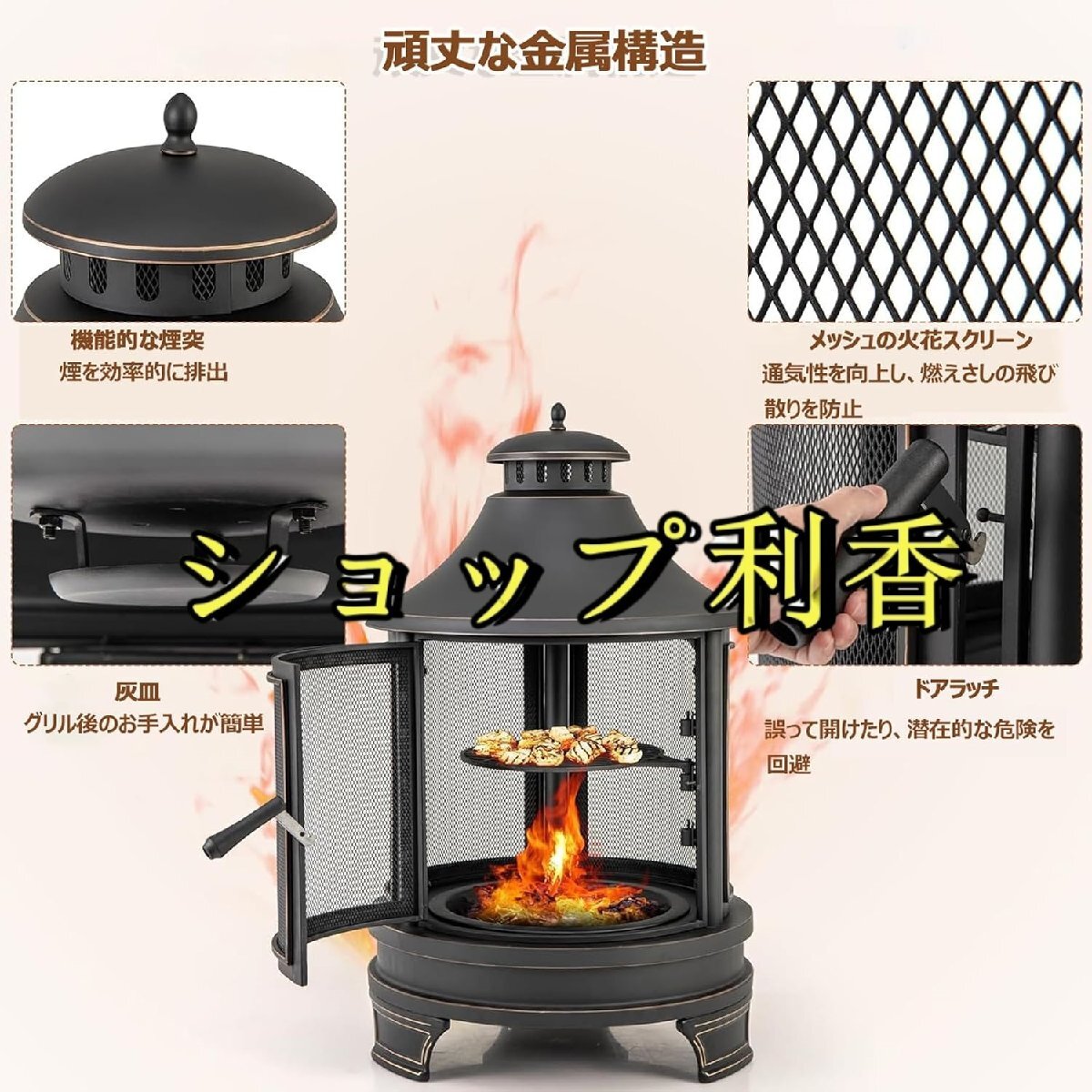 薪ストーブ 1台2役薪ストーブ 薪ストーブ クッキングストーブ 耐熱塗装 薪ストーブ 二次燃焼 キャンプ暖炉 ロケットストーブ 煙突付き焚き火台 コンパクト アウトドア ストーブ 料理 BBQ 調理 暖房 ストーブ 暖炉 5-6人用 薪ストーブ製品の利点:1. 重量約 36 kg、高さ 124 CM、直径 75 CM の寸法の固体鋼製炉本体。2.黒色の高温耐性コーティング、美しいアンティーク仕上げ、エレガントで実用的なデザイン。3. スイングアウト鋳鉄グリルのデザインは 3 つの位置に調整可能で、バーベキューや屋外調理に使用できます。4.火傷を防ぐために炉本体と煙突の周りに保護ネットがあります。5. 3 つの超幅広保護メッシュフレームにより、炎の燃焼効果をあらゆる方向から鑑賞し、火の暖かさ。6. 大きなヒンジ付きスクリーンドアにより、木材を入れたり、調理グリルを操作したり、ピクニックポットを入れたりするのが簡単で、オーブンの空洞の掃除も簡単です。製品パラメータ:色: 黒サイズ: 75*124cm/75*174cm材質:スチールパッケージ内容:薪ストーブ、炭受け、鋳鉄製の焼き網、防雨カバー注記:1.測定ツールが異なるため、1?3mmの測定誤差はご了承ください。2.モニターや照明効果の違いにより、実際の商品の色は写真の色と多少異なる場合があります。