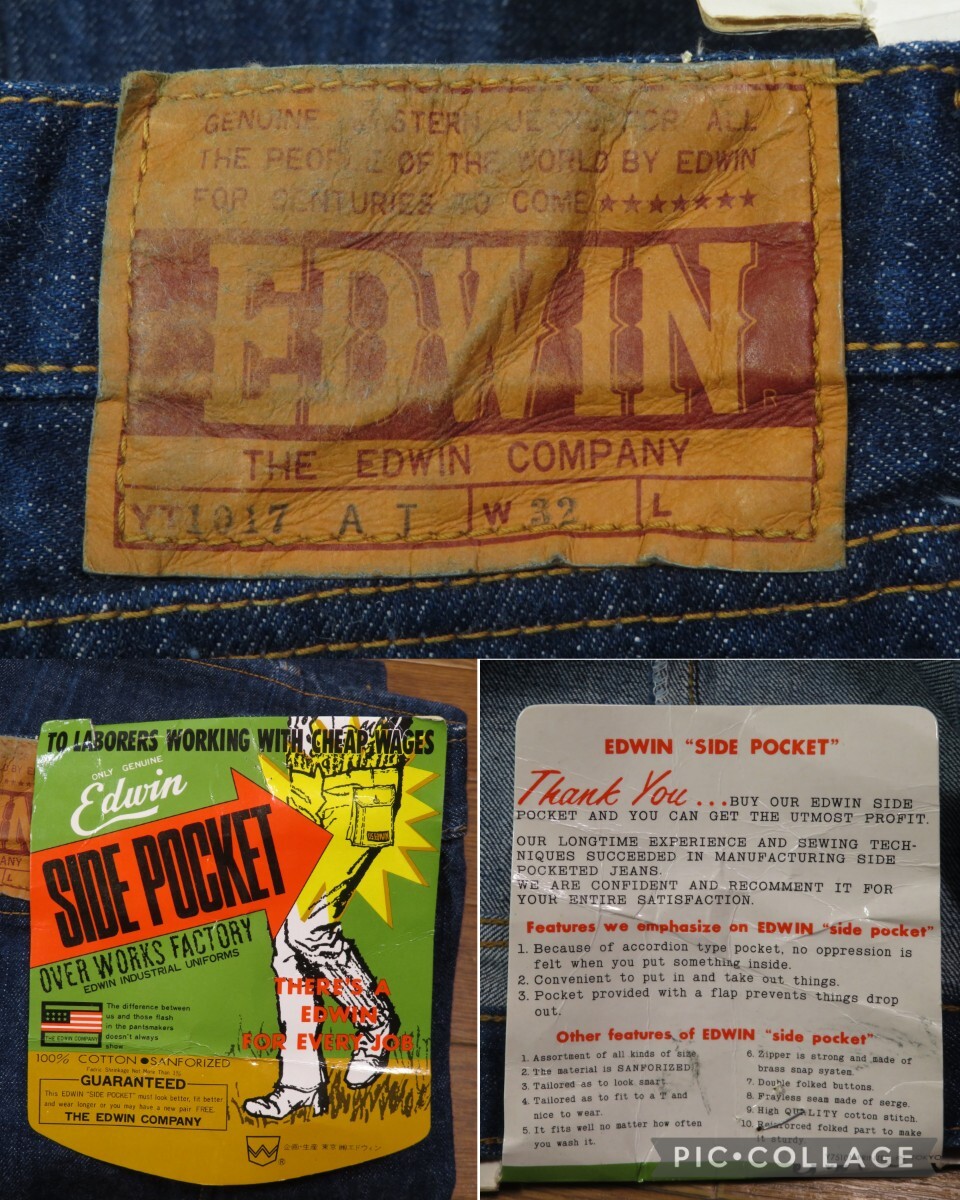 ・EDWINが1970年代頃に生産したYT1017ATサイドポケットデニムパンツ