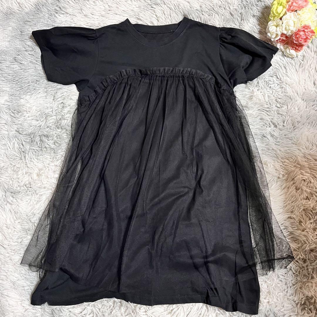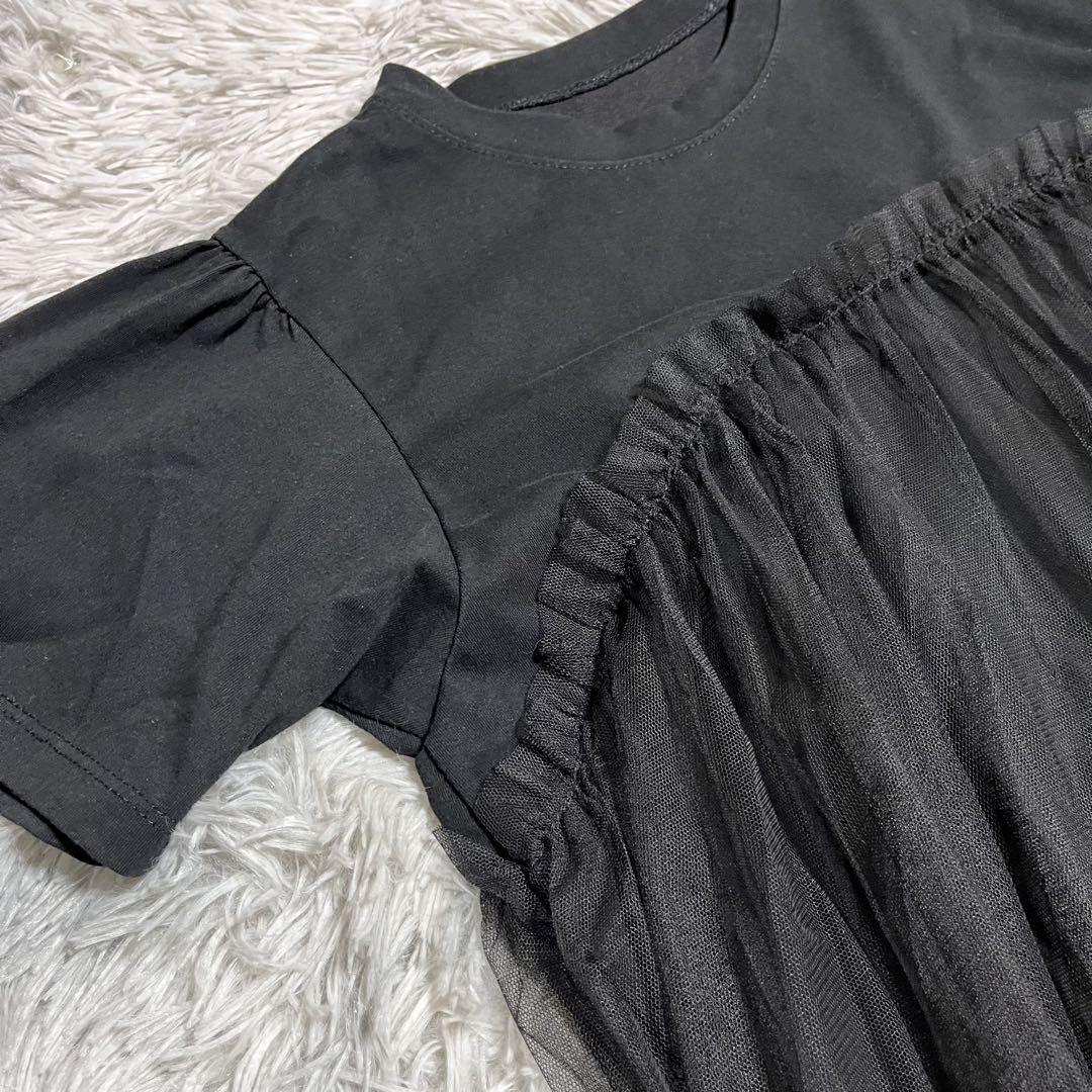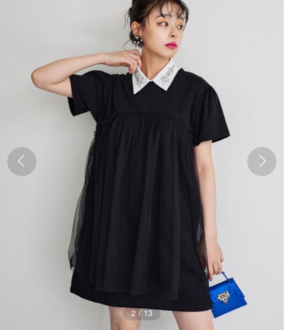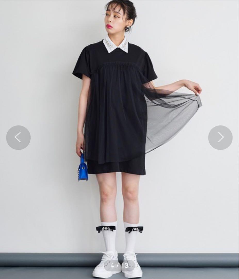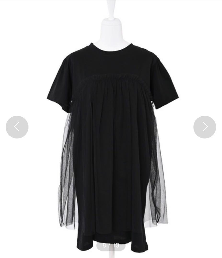 【Narcissus】チュールレイヤードワンピースバスト部分からチュールがレイヤードされたTシャツワンピース。